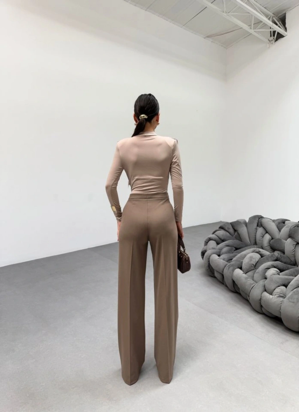 230 Gr Poly Viscose Lycra Metal Düğme Palazzo Pantolon