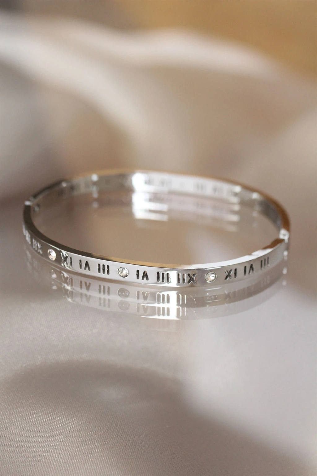 316L Çelik Roma Rakamlı Silver Renk Bilezik Kelepçe