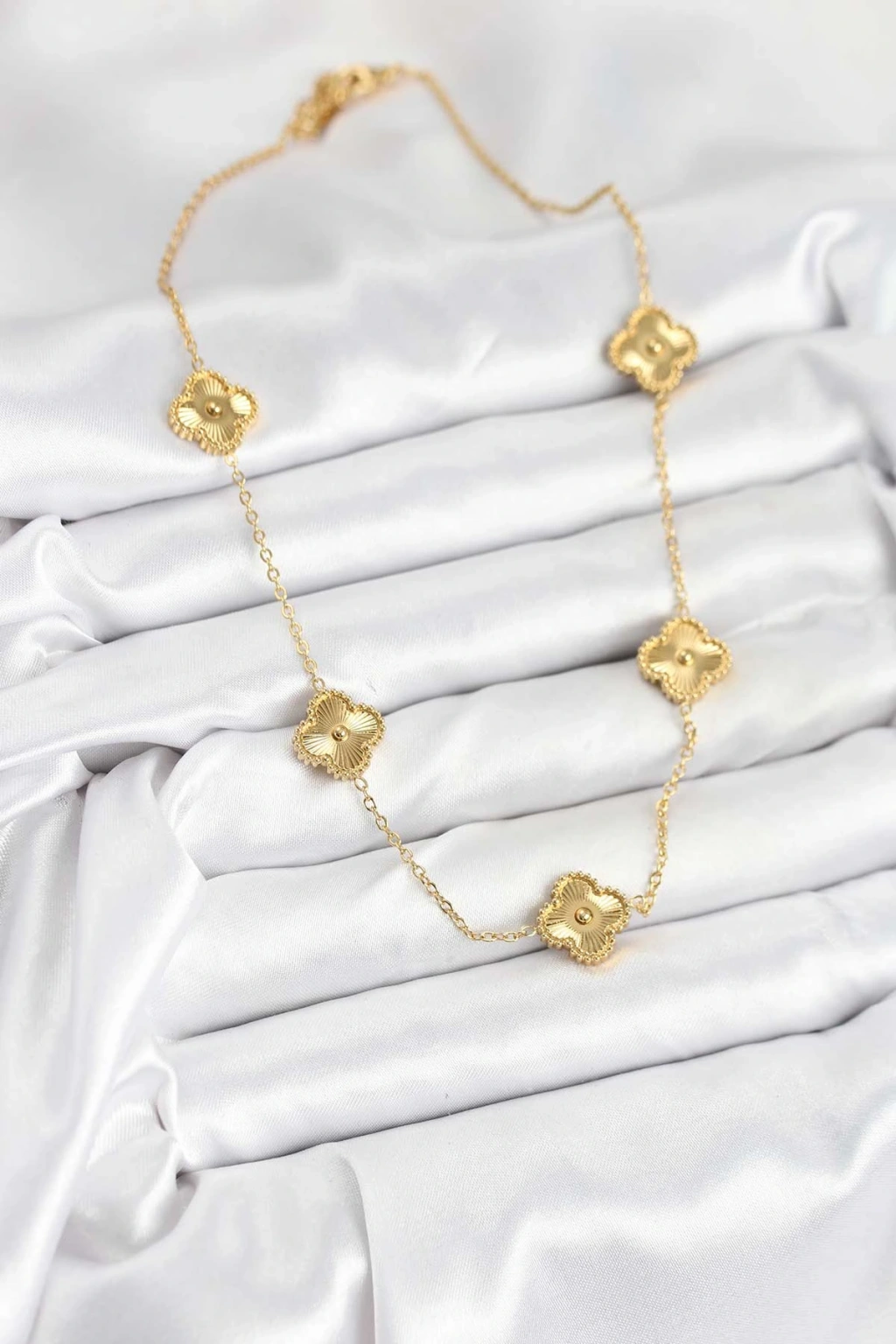 316L Çelik Zincir Gold Renk Yonca Kadın Kolye