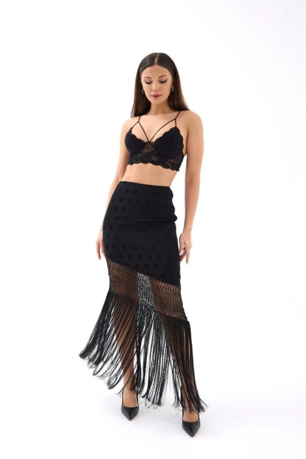 Modelin Ölçüleri: Boy:165, Kg:55, Göğüs:90, Bel:72, Kalça: 100