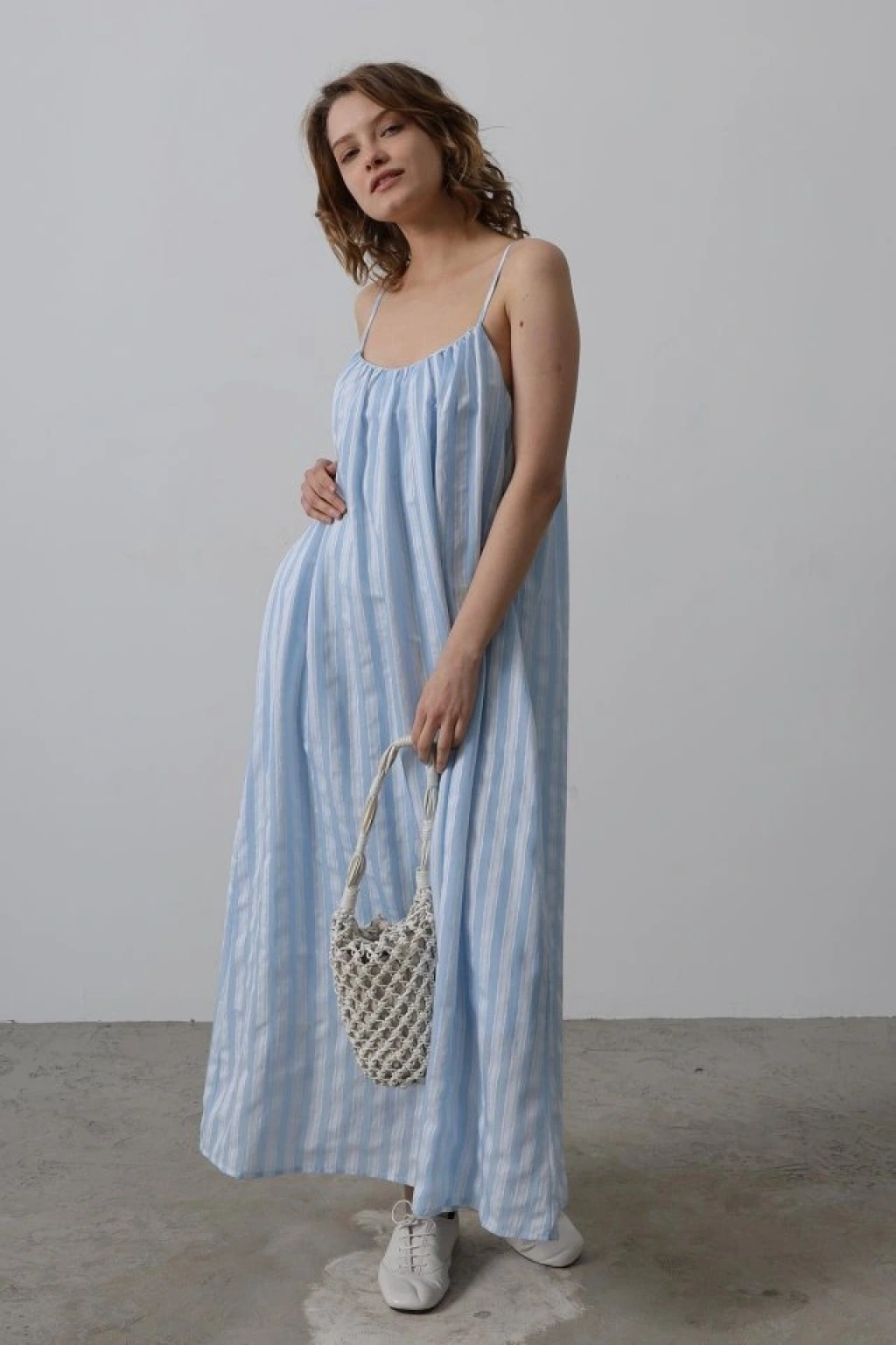 Askılı Çizgi Desen Elbise - Bebe Mavisi