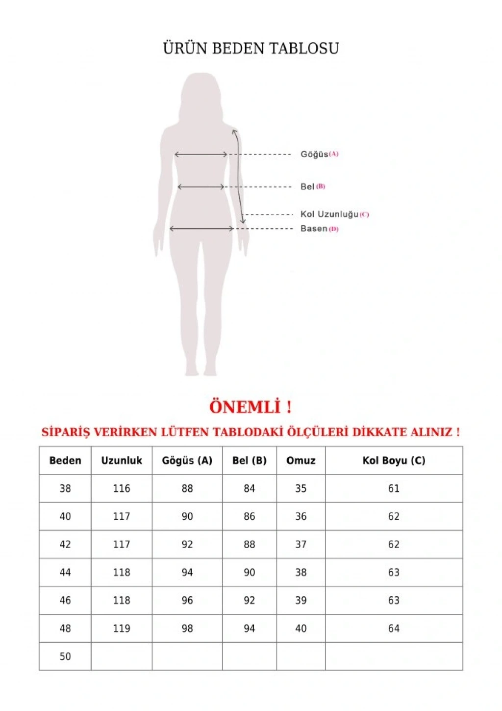 Modelin Ölçüleri: Boy:165, Kg:55, Göğüs:90, Bel:72, Kalça: 100