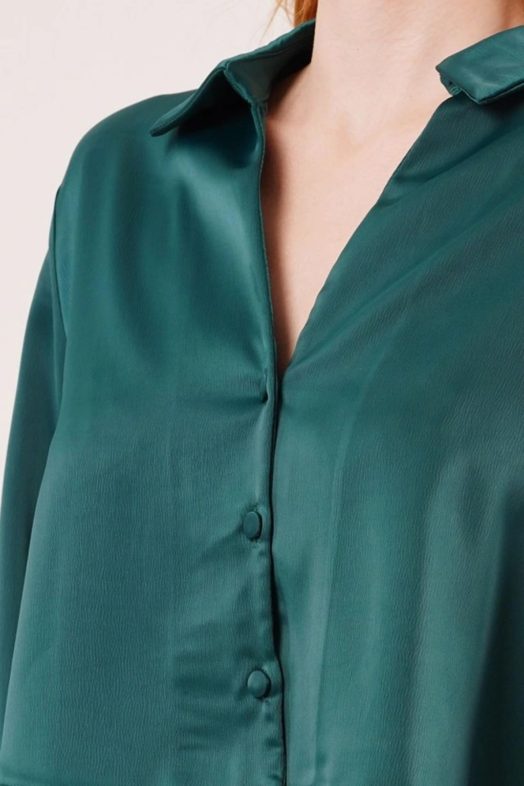 Saten Crop Model Yeşil Gömlek