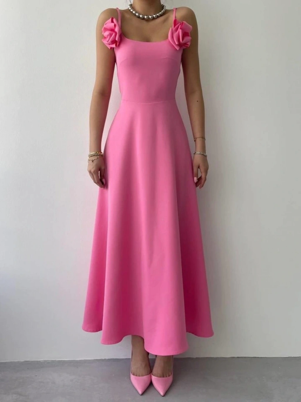 Matilda Gül İp Askılı Elbise