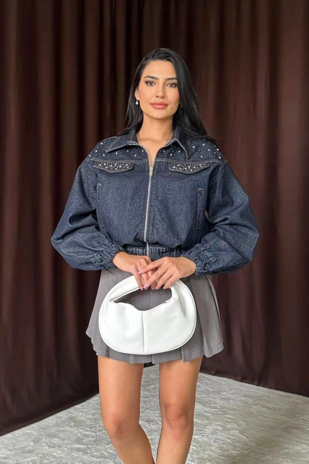 Mavi Taşlı Kısa Kot Ceket