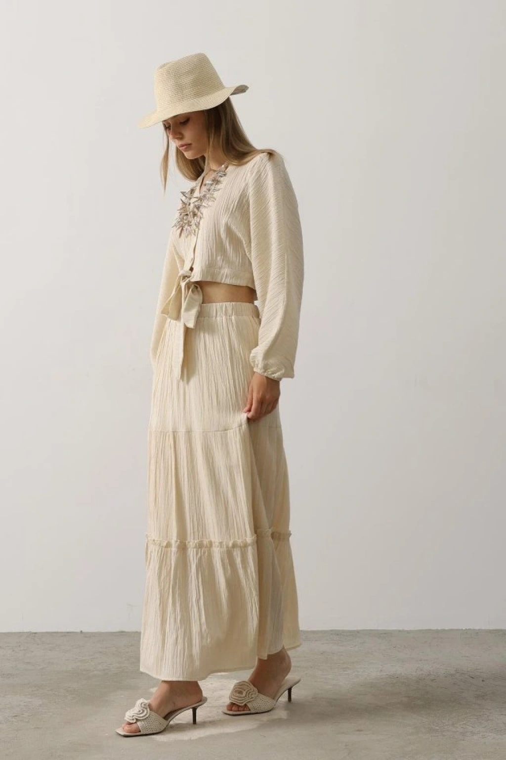 Modelin Ölçüleri: Boy:165, Kg:55, Göğüs:90, Bel:72, Kalça: 100