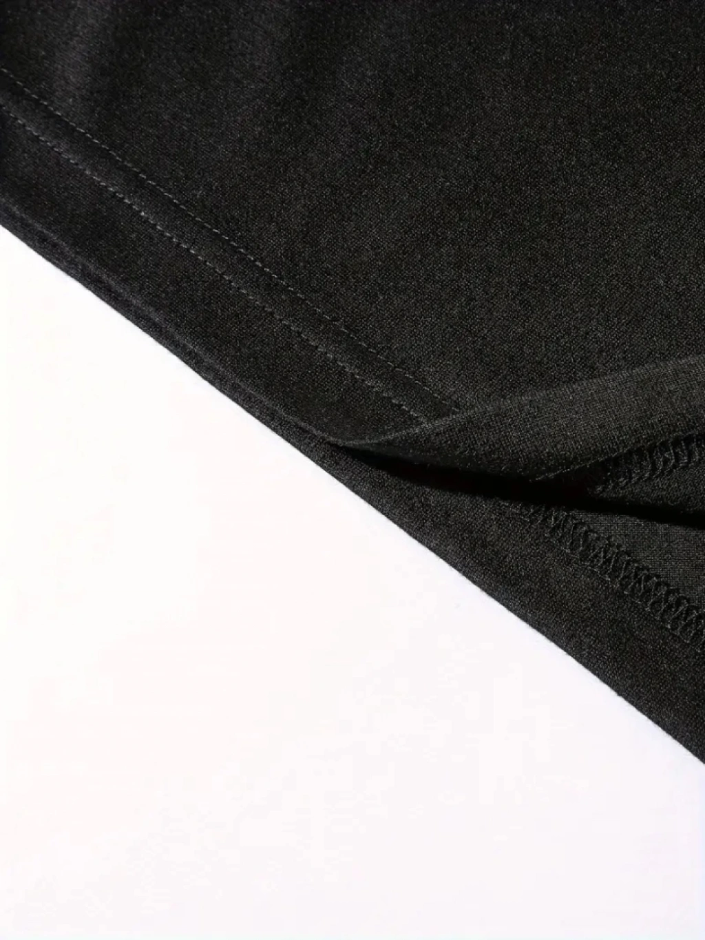 Erkek Büyük Beden Kart Baskılı Düz Renk Kısa Kollu Bisiklet Yaka Tişört Gündelik Giyim iyah