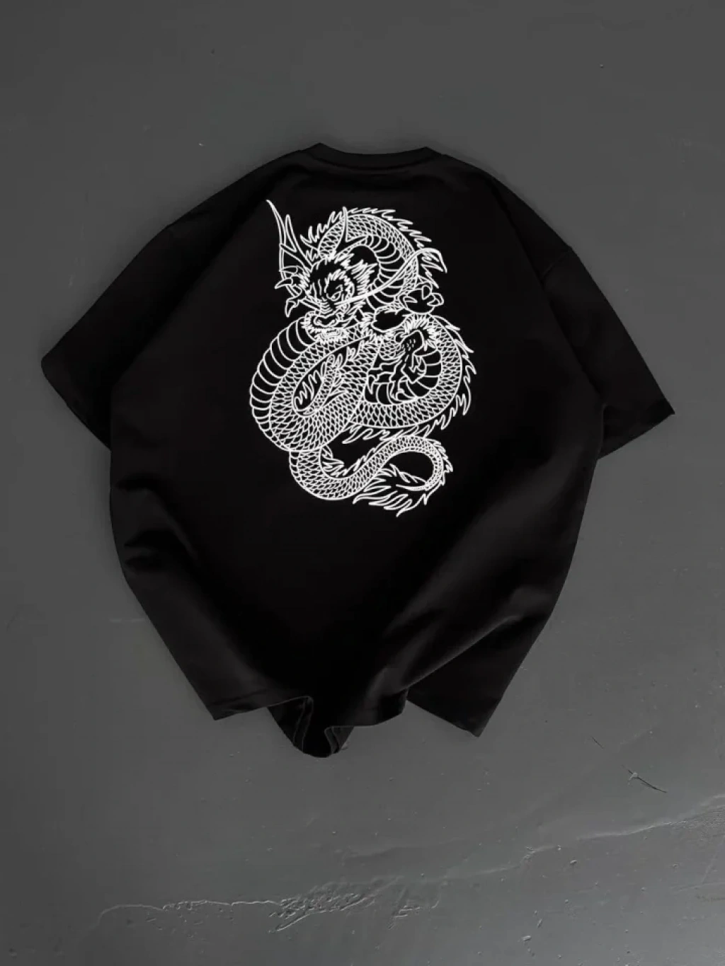 Baskılı Oversize Bisiklet Yaka Tshirt iyah