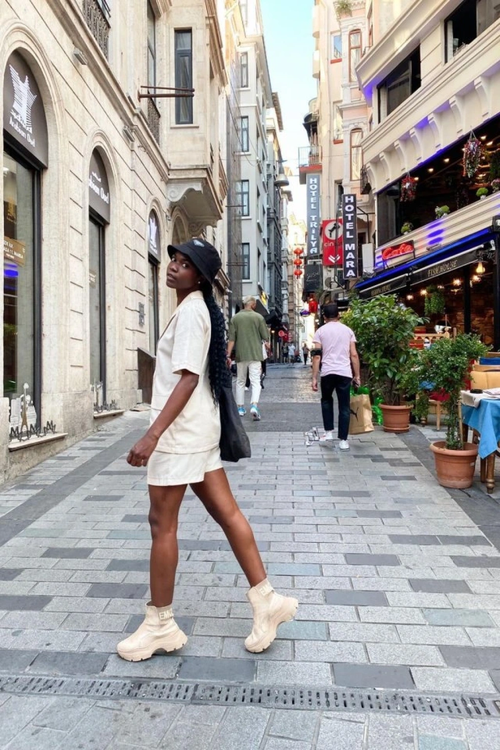 Modelin Ölçüleri: Boy:165, Kg:55, Göğüs:90, Bel:72, Kalça: 100