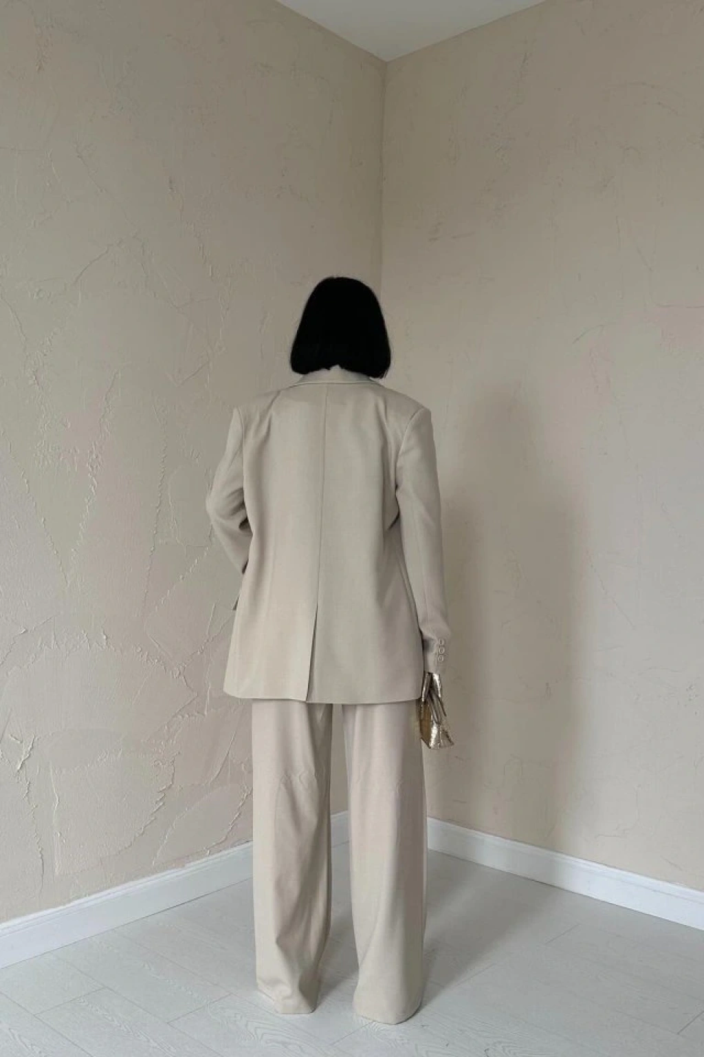 Bej Klas Ceket Ve Yelek Ve Pantolon Takım