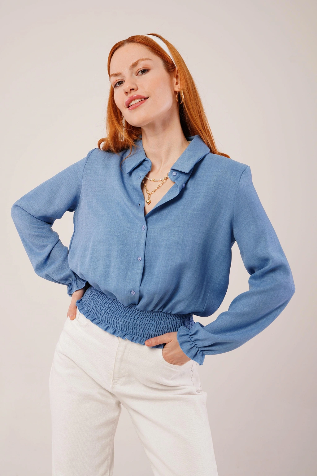 Bel Ve Bilek Lastikli Mavi Bluz