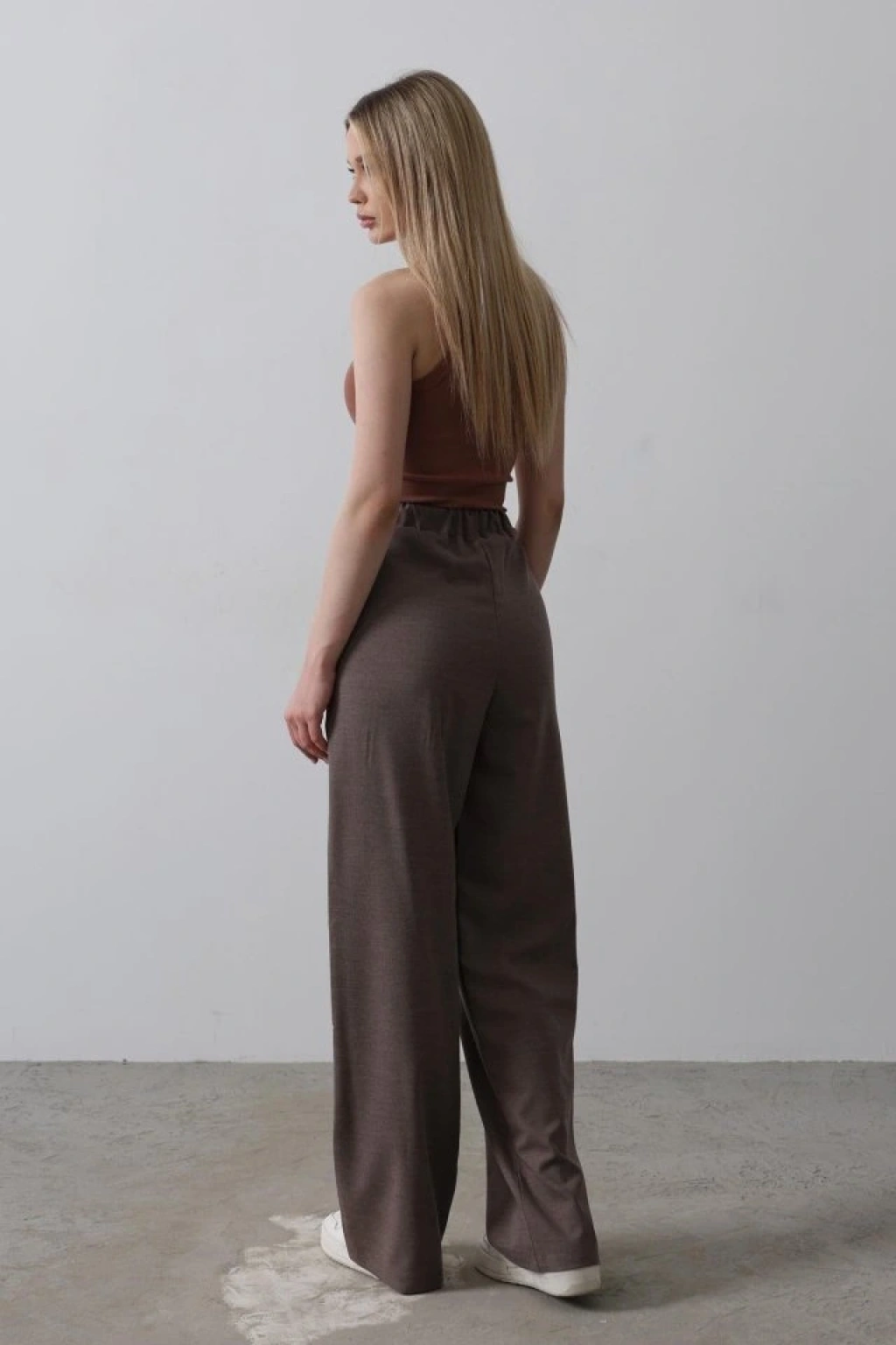 Beli Yarım Lastikli Palazzo Pantolon - Kahve
