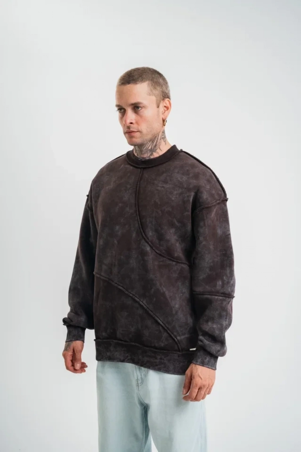 Bisiklet Yaka Yıkamalı Asimetrik Kesşm SweatShirt - Kahve