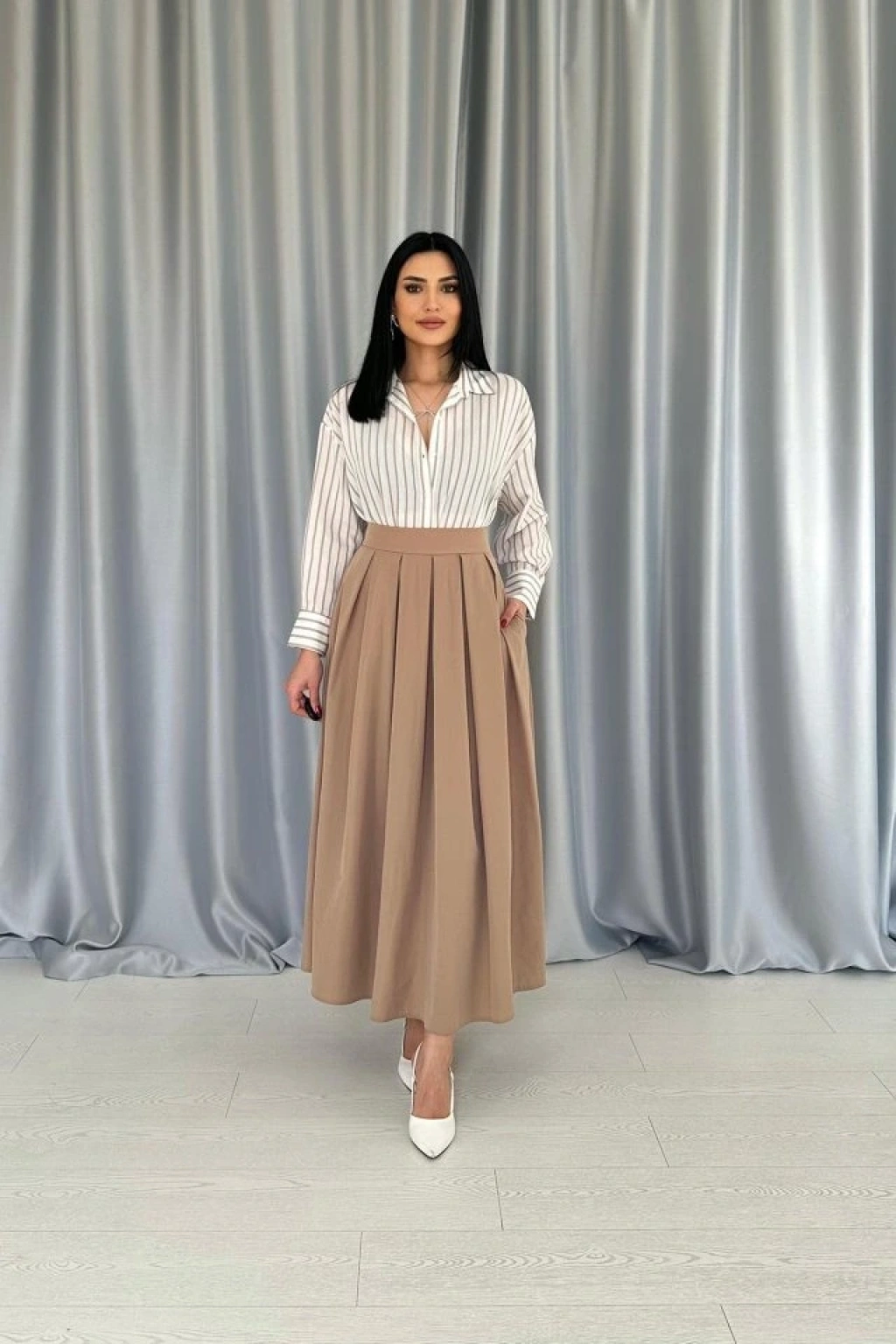 Camel Uzun Pileli Etek