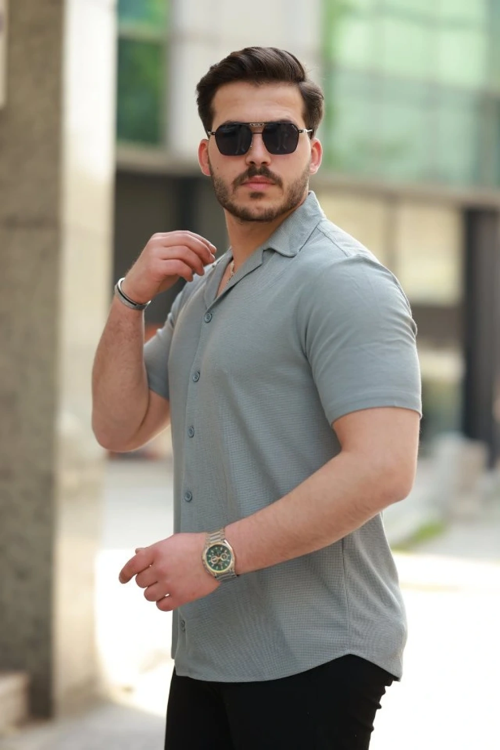 Erkek Apaç Yaka örme Kumaş Kısa Kollu Gömlek