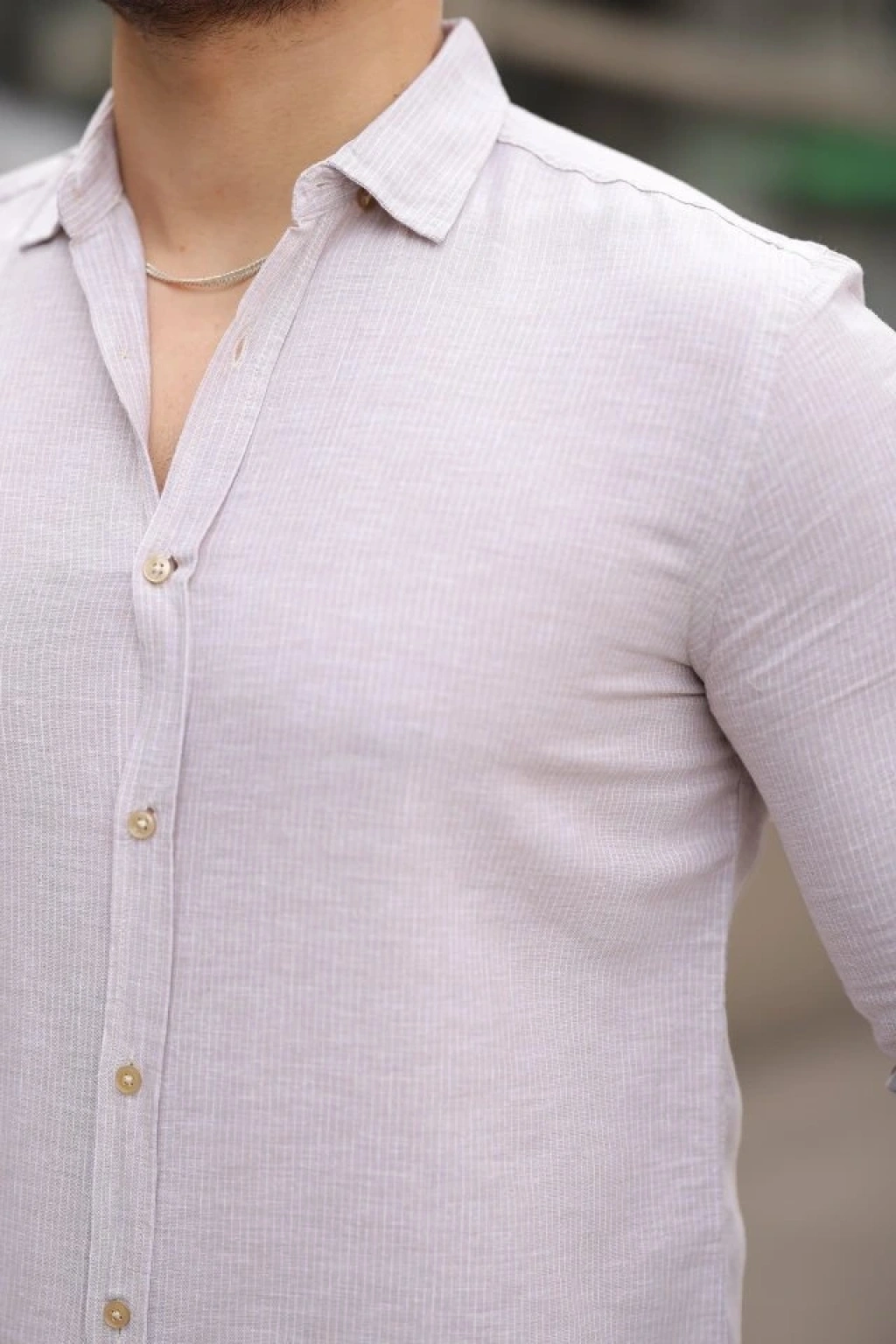 Erkek çizgili Keten Gömlek