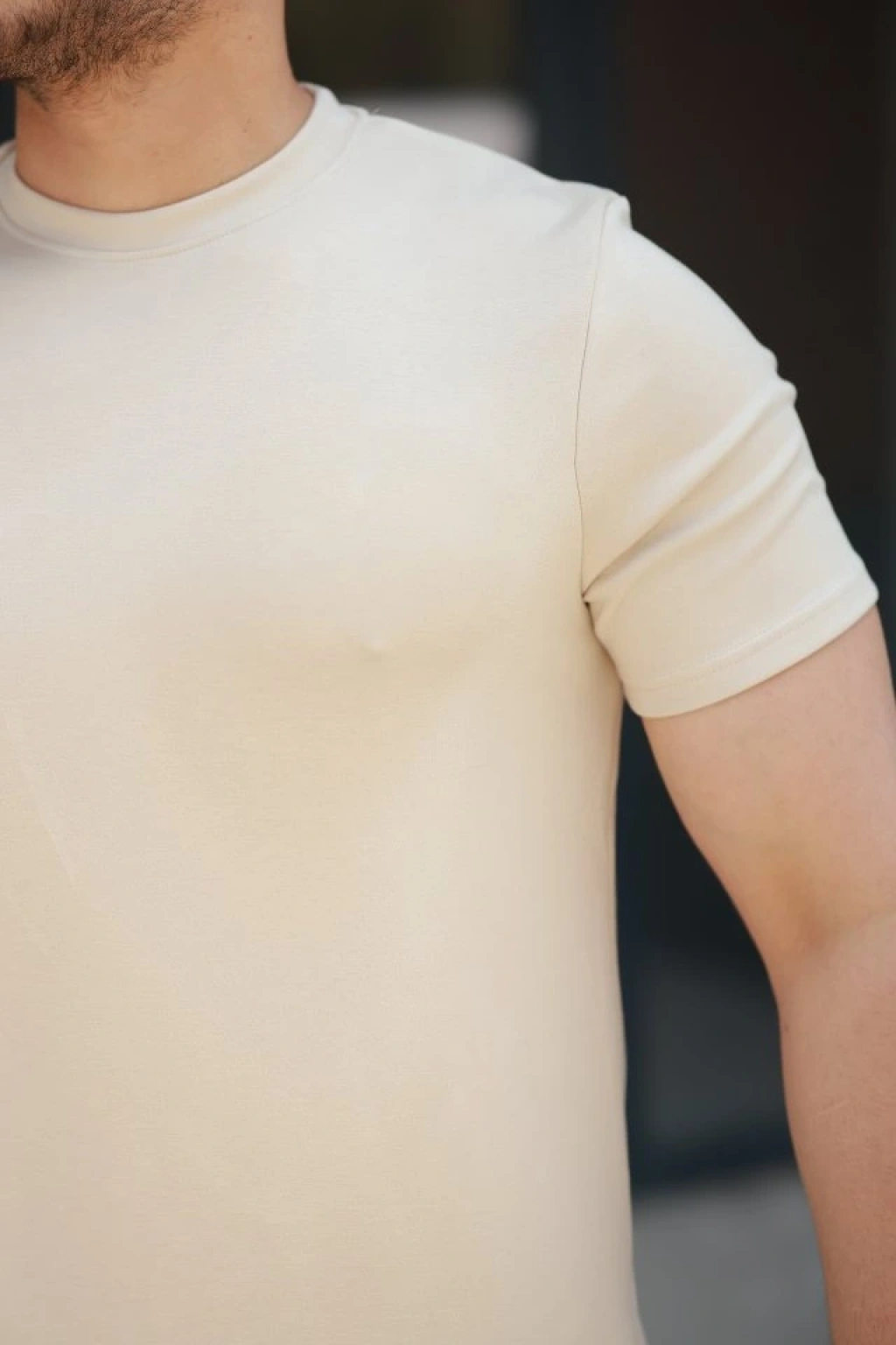 Erkek 24/1 Düz A Kalite Oversize Tshirt Bej
