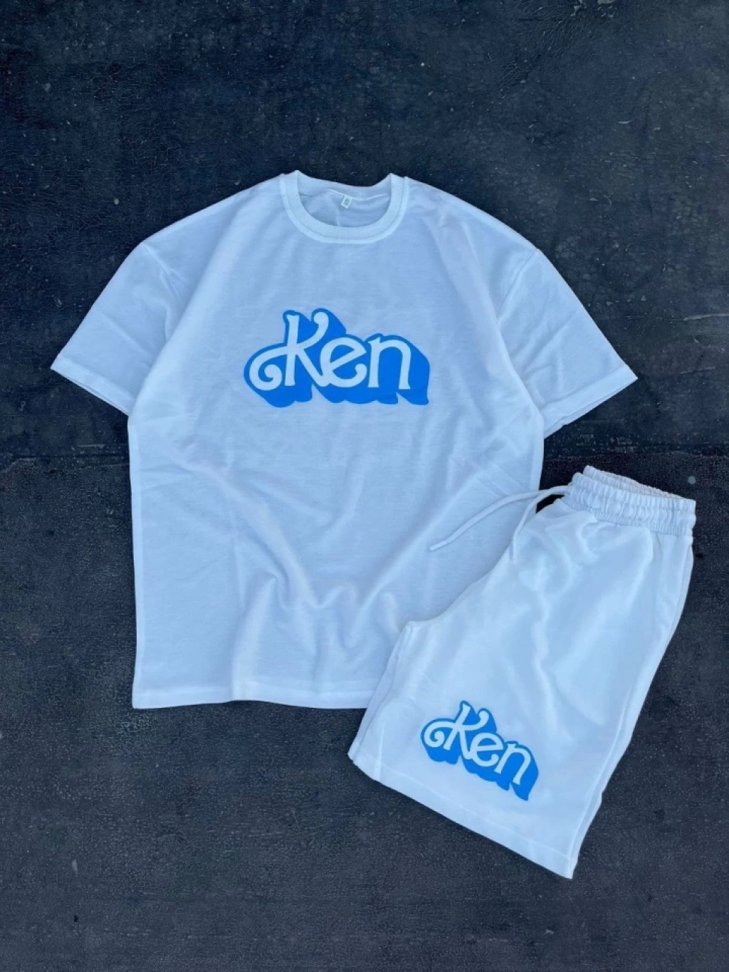 Erkek Baskılı İkili Şort Takım Beyaz