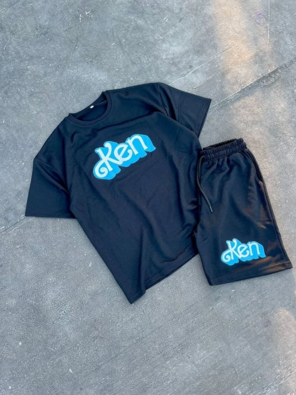 Erkek Baskılı İkili Şortlu Takım Beyaz