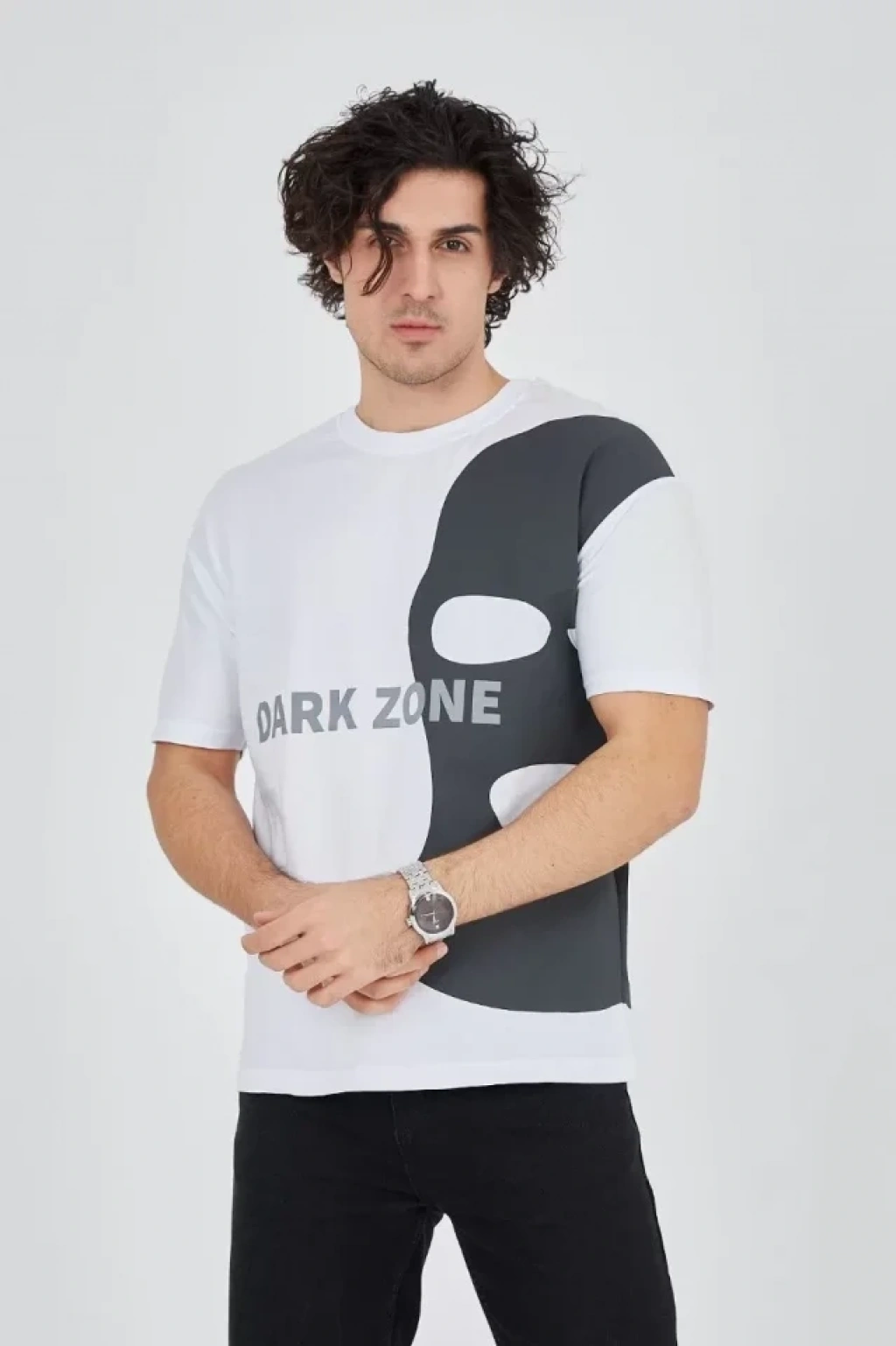 Erkek Oversize Dijital Baskılı Kuru Kafa Tshirt Beyaz