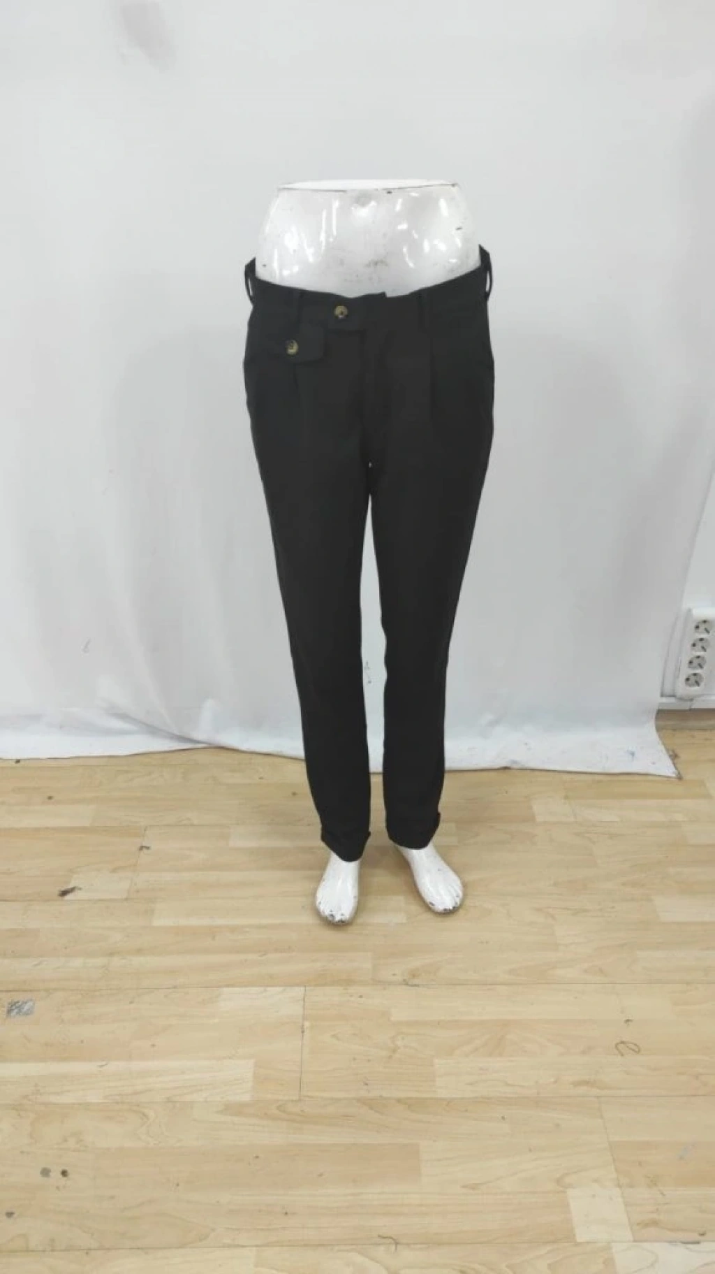 Erkek Belden Düğmeli Cepli Dokuma Pantolon