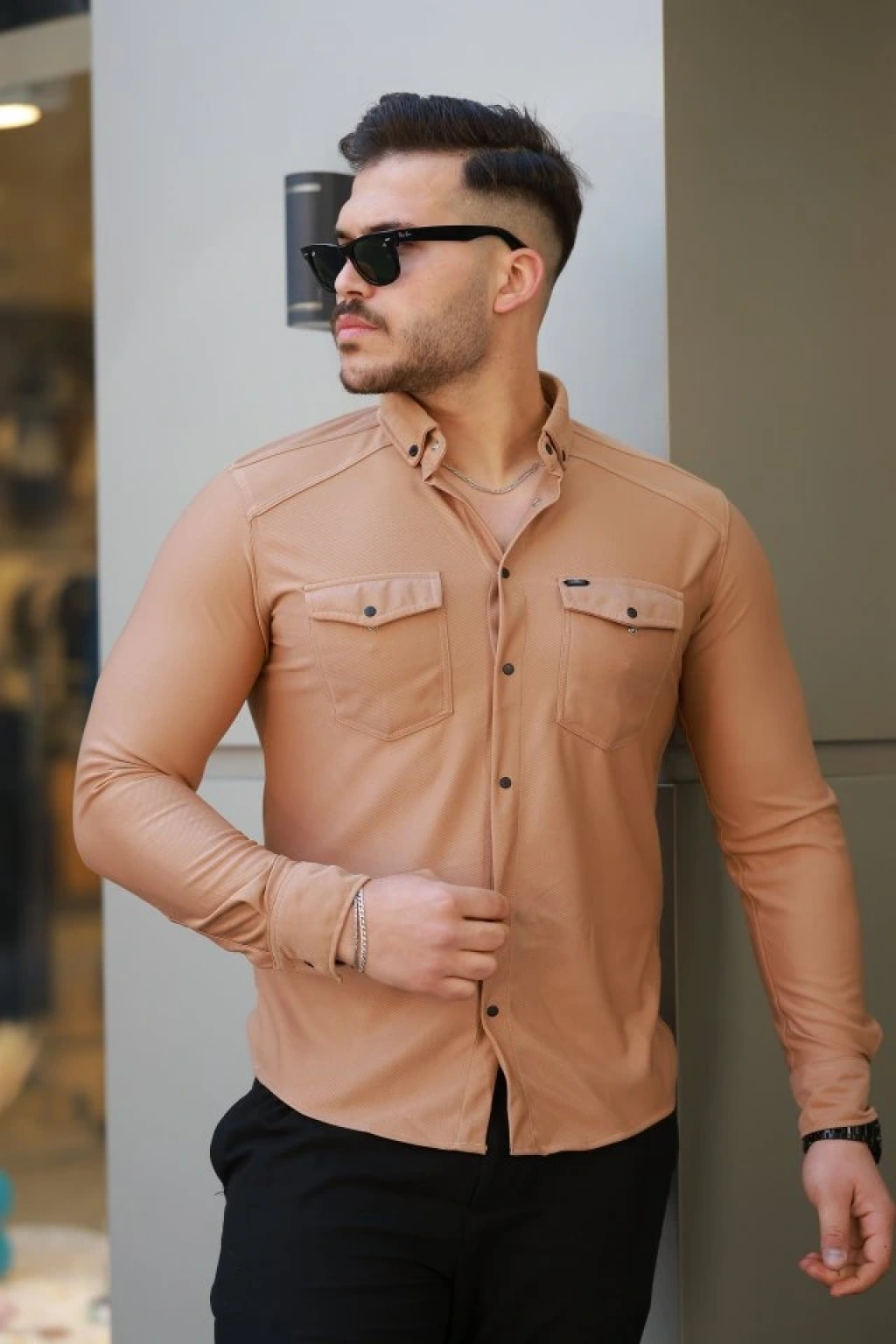 Erkek çıtçıt Düğmeli Dikiş Detaylı Uzun Kollu Gömlek