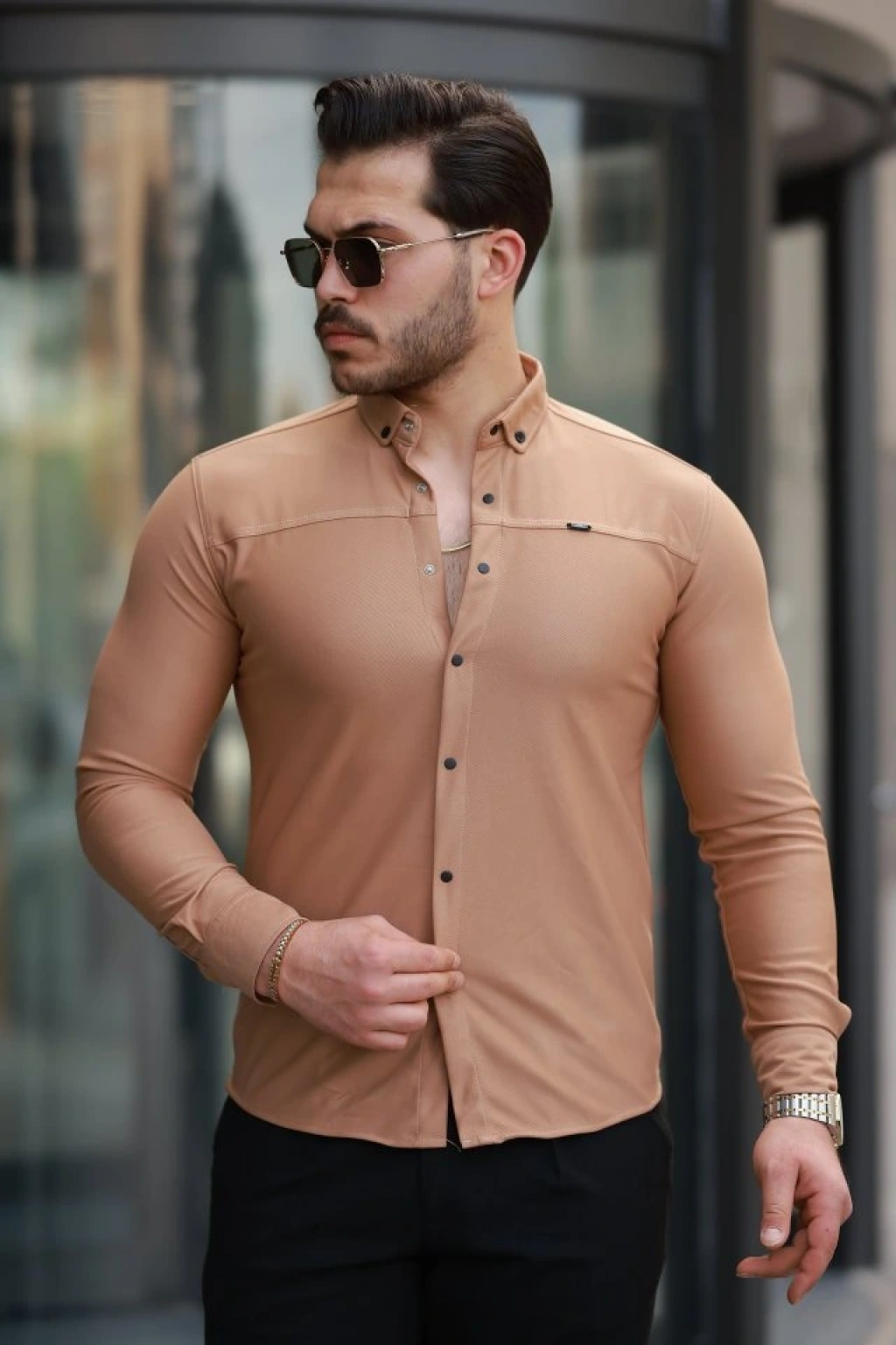 Erkek çıtçıt Düğmeli Dikiş Detaylı Uzun Kollu Gömlek