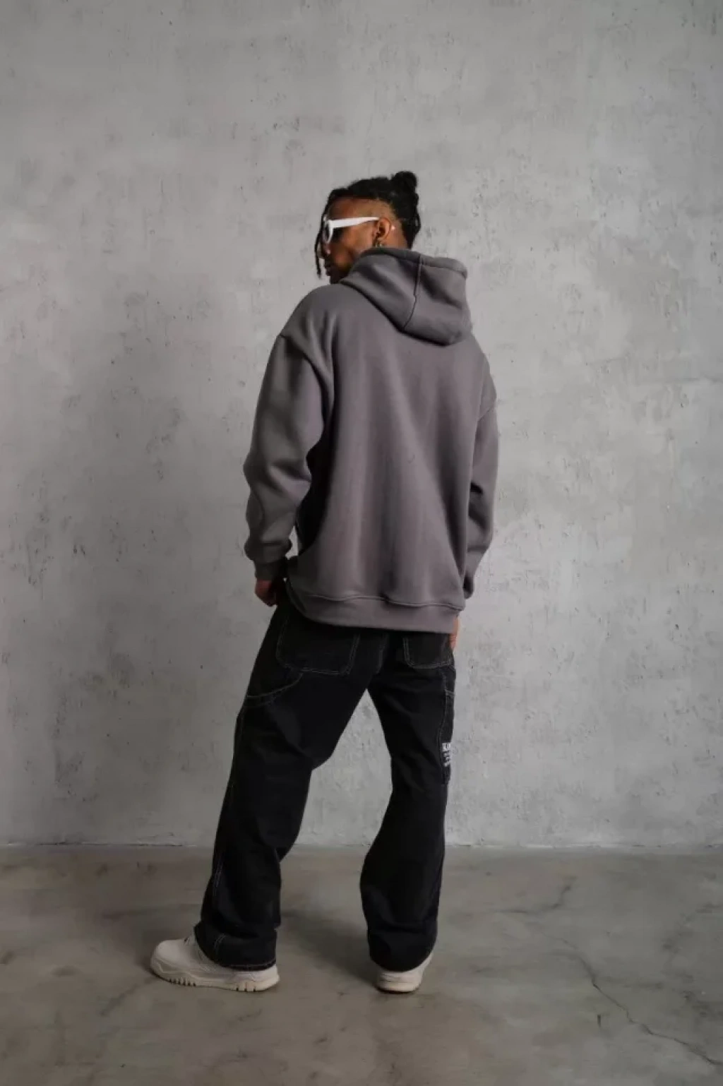 Erkek Üç İplik Baskılı Kapüşonlu weat iyah