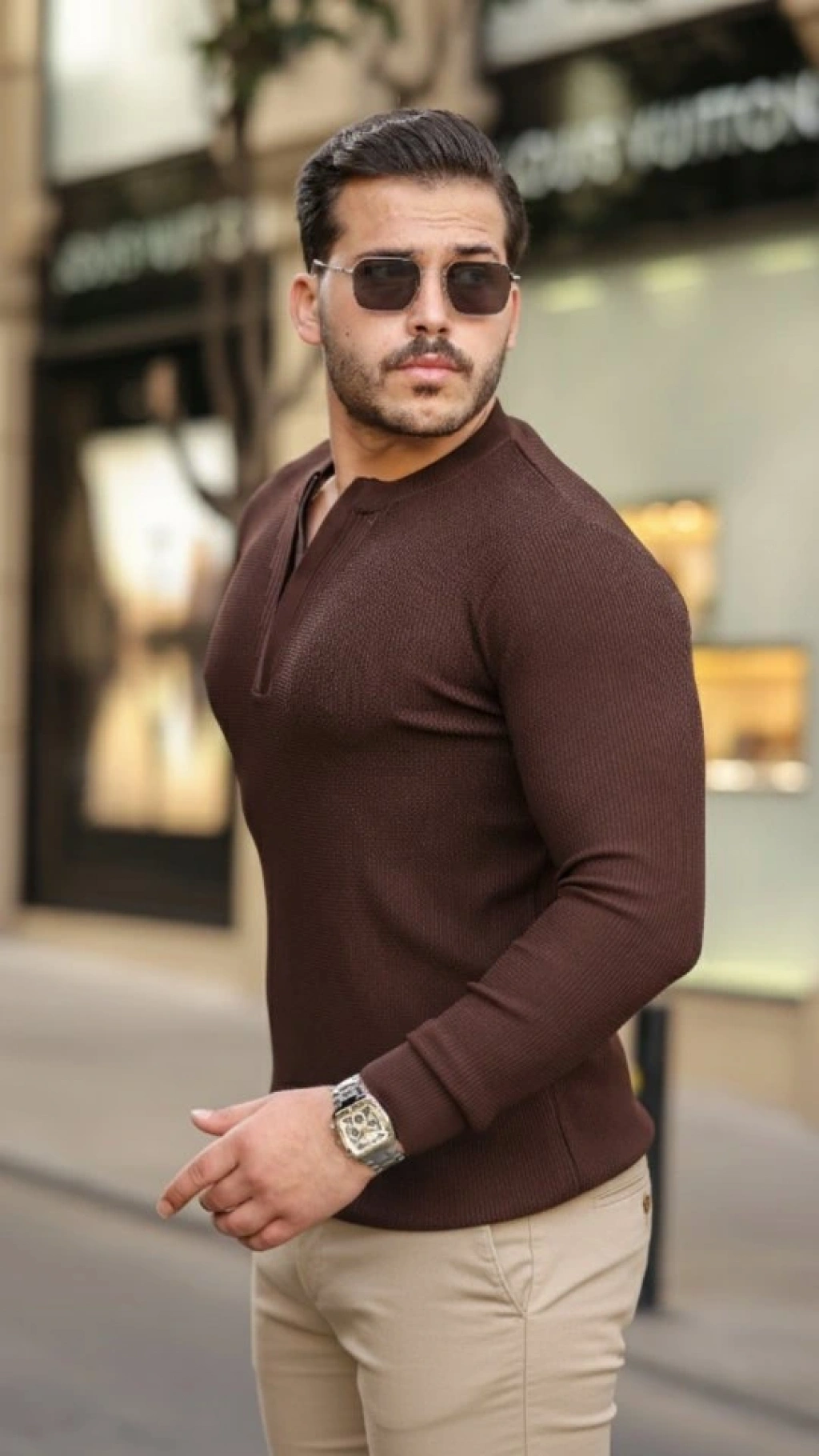 Erkek Selanik Örme Bisiklet Yaka Triko