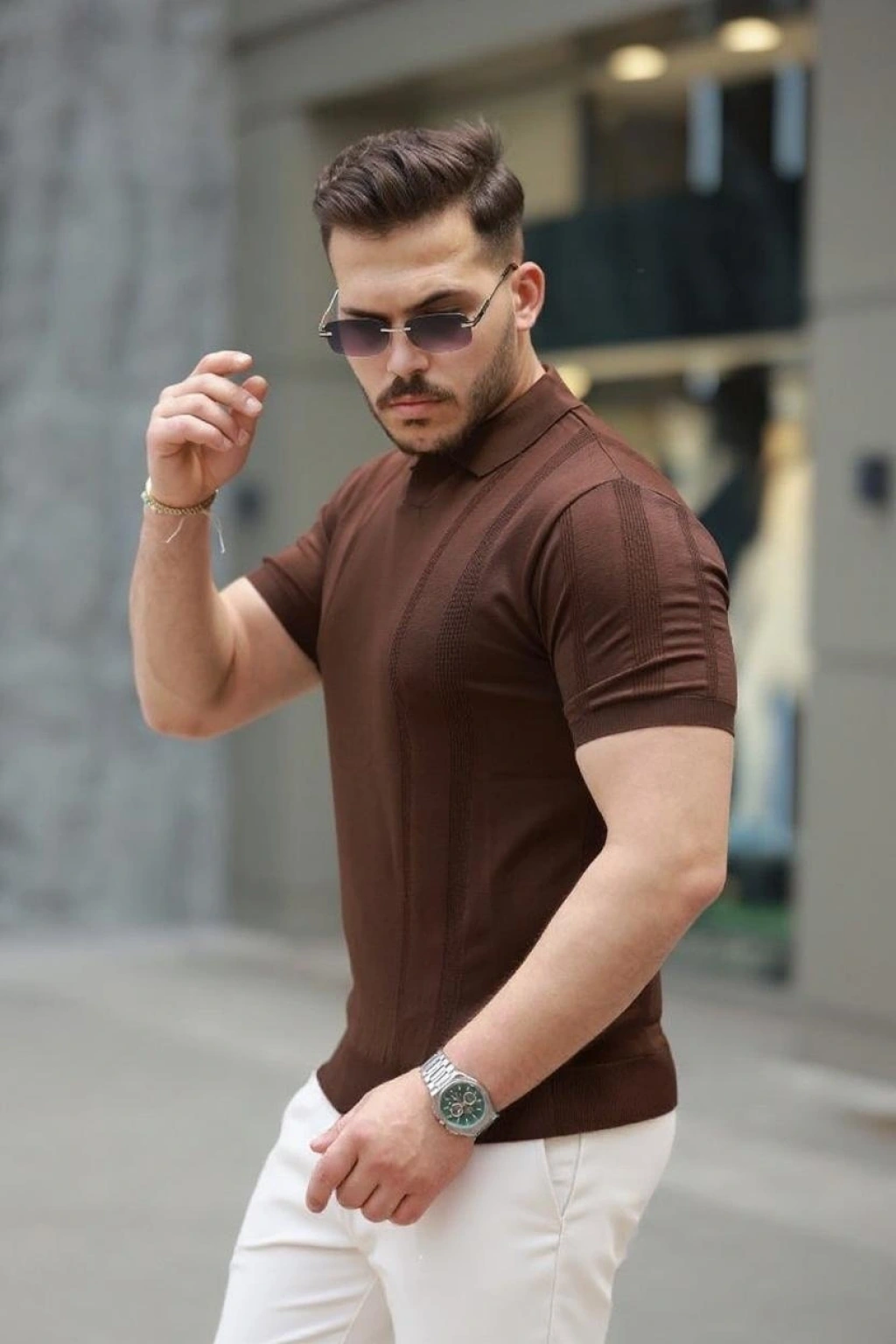 Erkek Omuz Fileli lim Fit Tshirt iyah