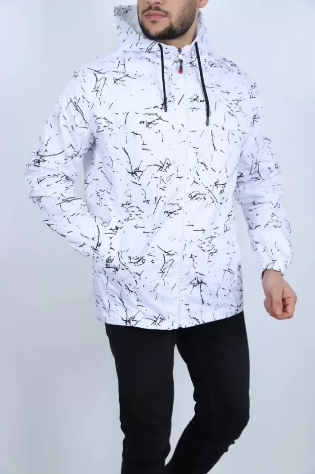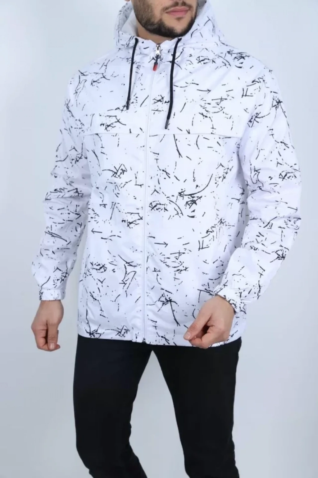 Erkek Paraşüt Kumaş Dijital Baskılı Rüzgarlık Beyaz