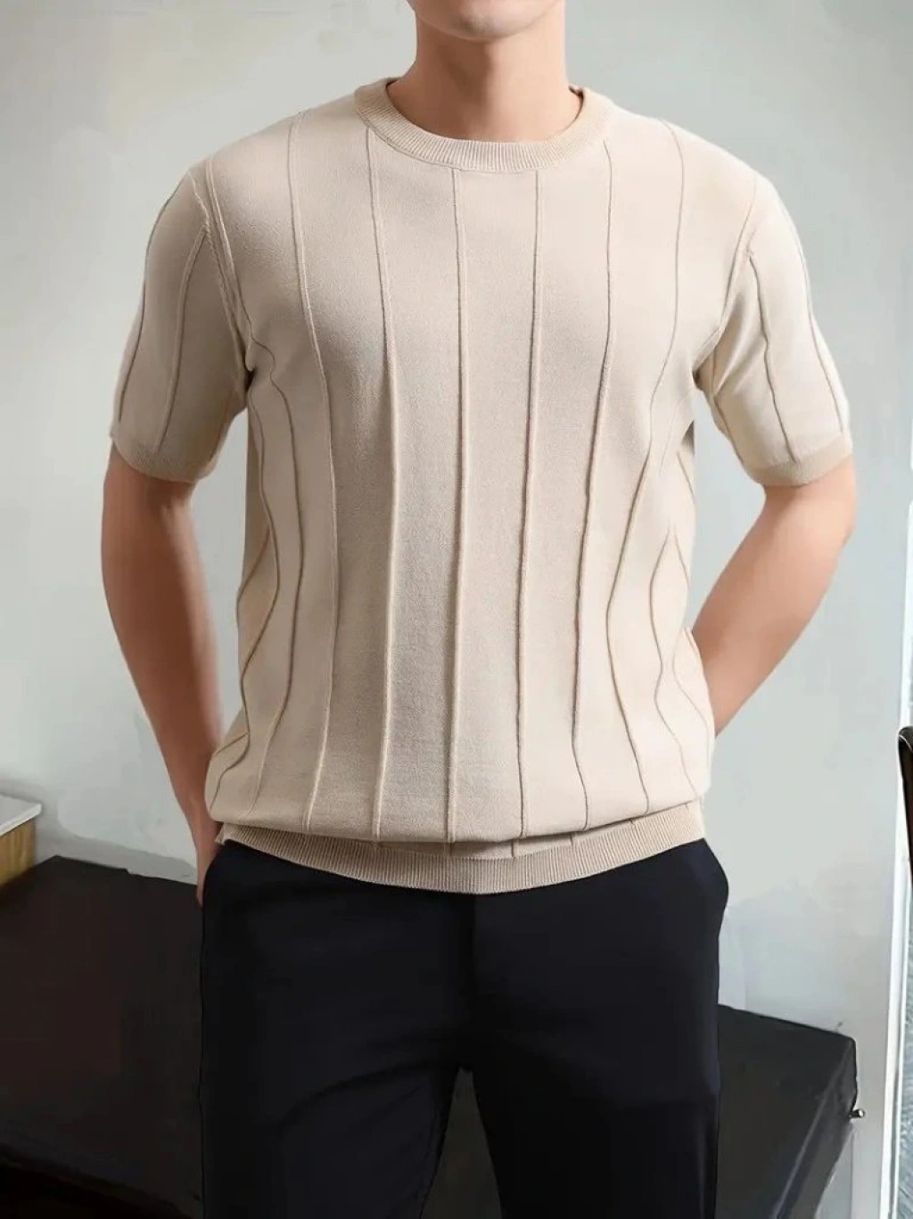 Erkek Kısa Kollu Bisiklet Yaka çizgili Triko Tişört