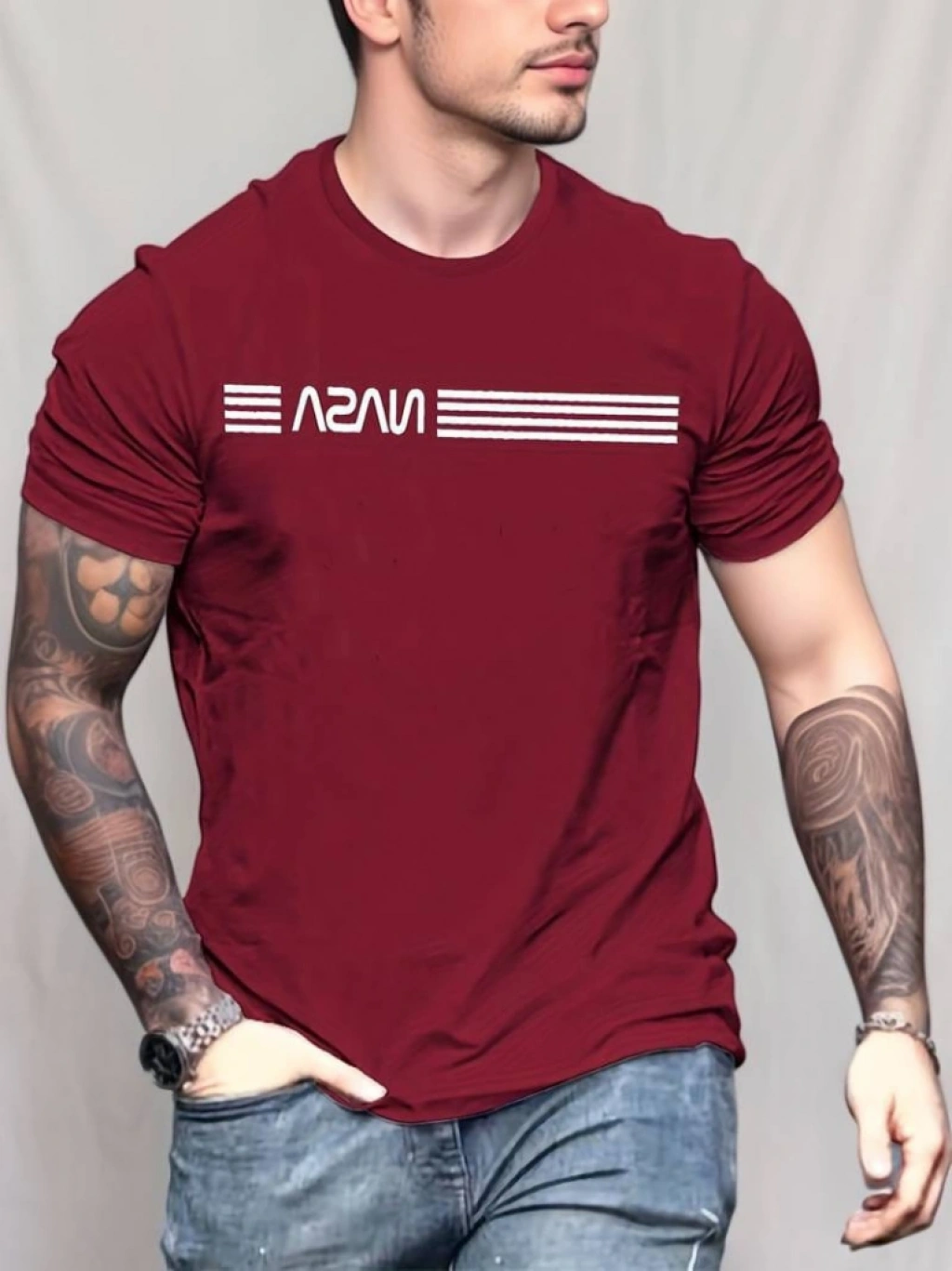 Erkek Kısa Kollu Nasa Baskı Basic Erkek Tshirt
