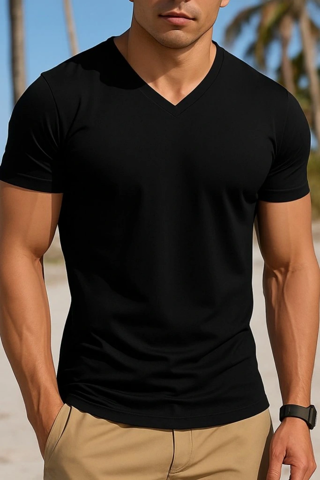 Erkek Kısa Kollu V Yakalı Viskon Tişört