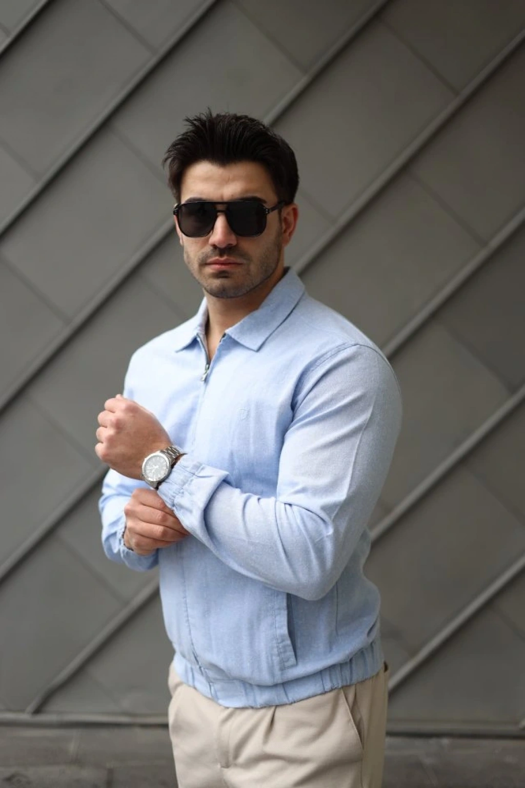 Erkek İçi Astarlı İçten Yaka Kısmı Peluşlu uni Kumaş Vintage Ceket acivert