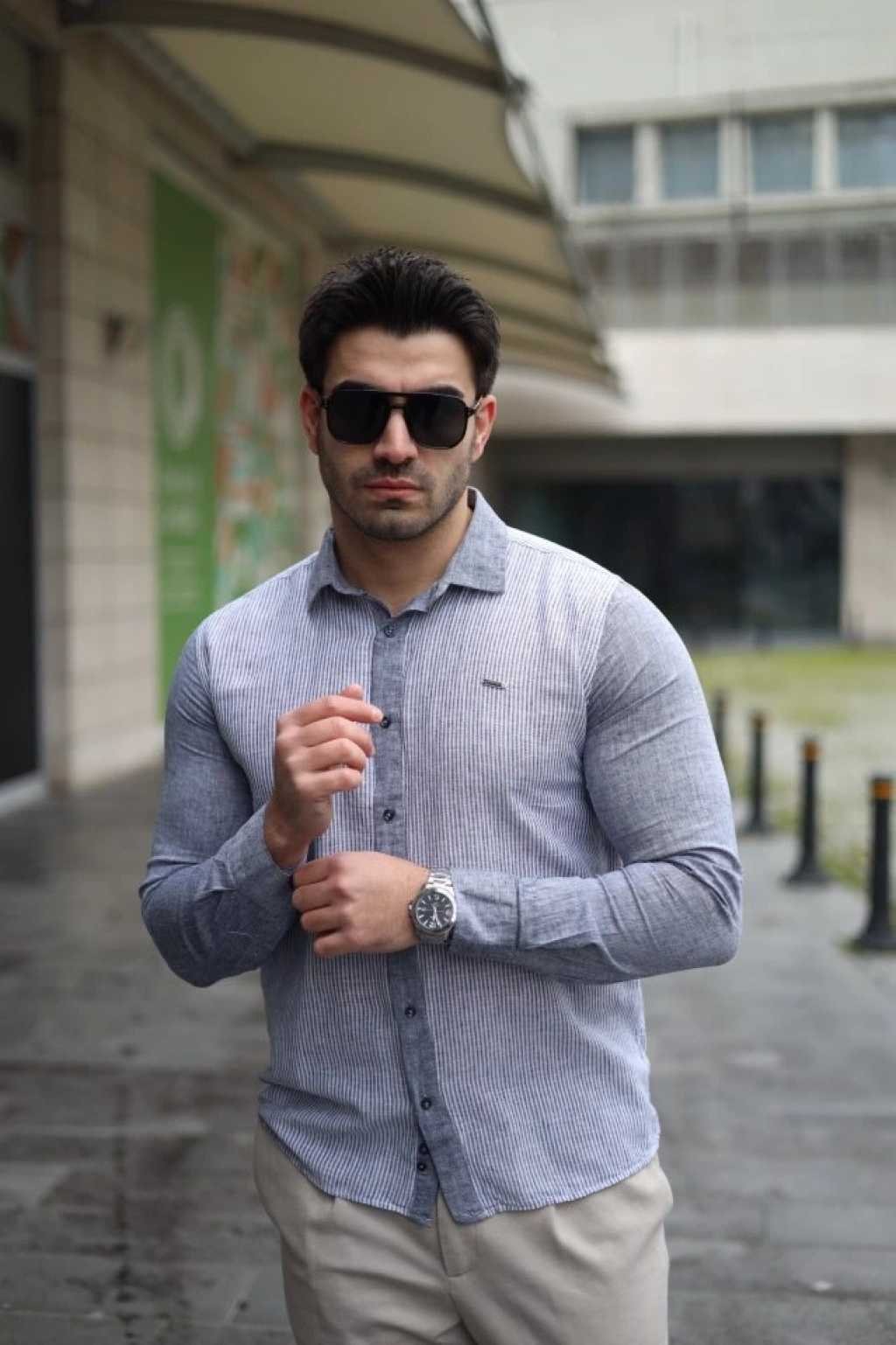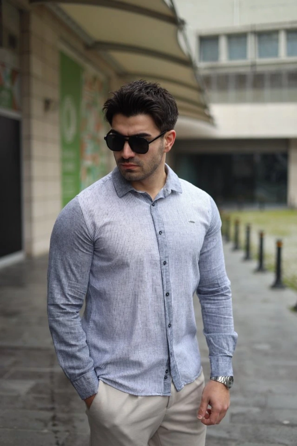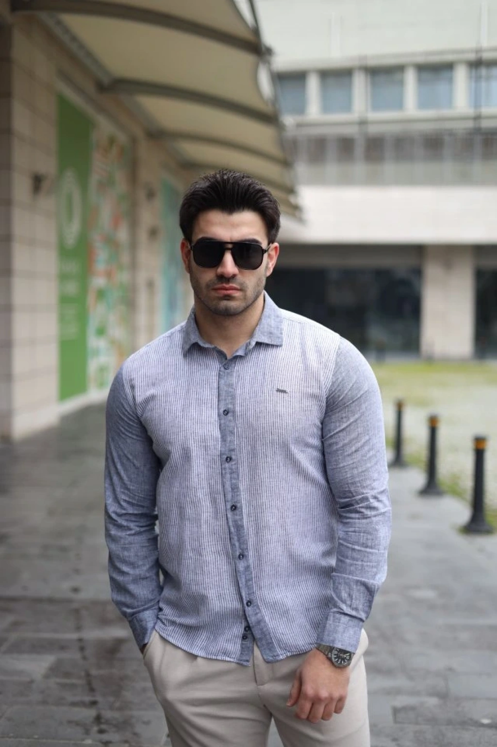 Erkek Uzun Kollu Regular ofya Keten Gömlek