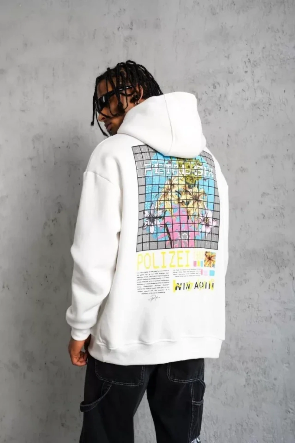 Erkek 98 Baskılı Kapşonlu weat Beyaz