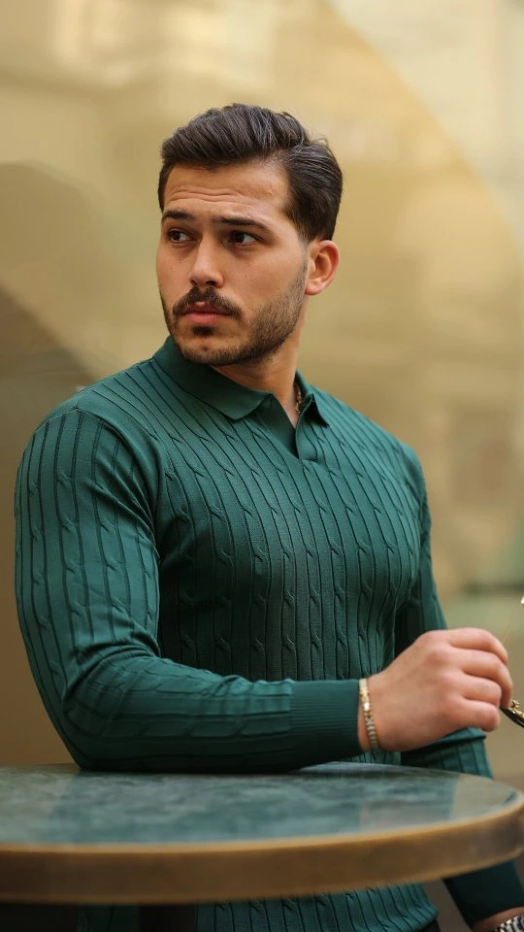 Erkek Selanik Örme Bisiklet Yaka Triko