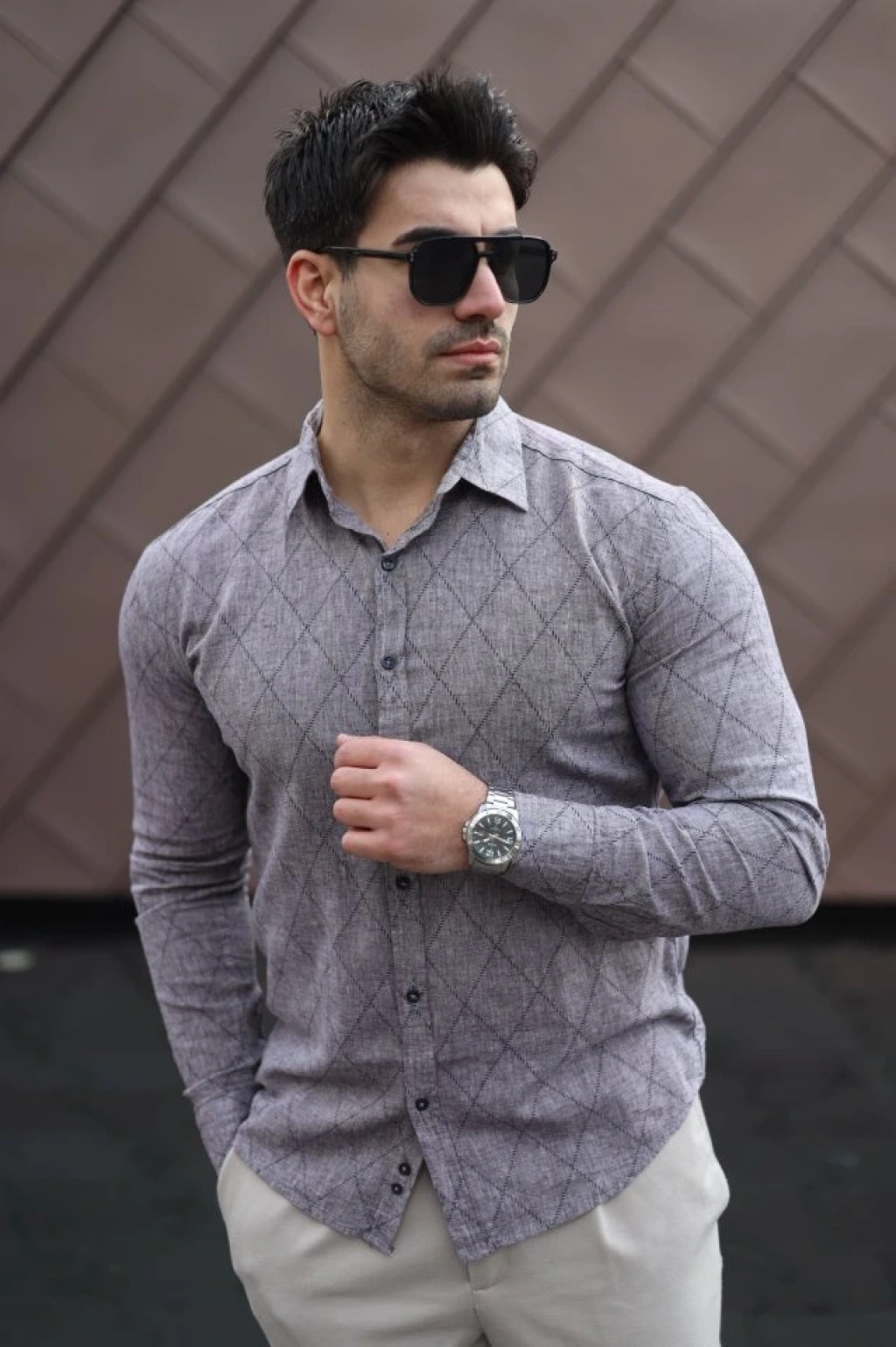 Erkek Uzun Kollu Regular ofya Keten Gömlek