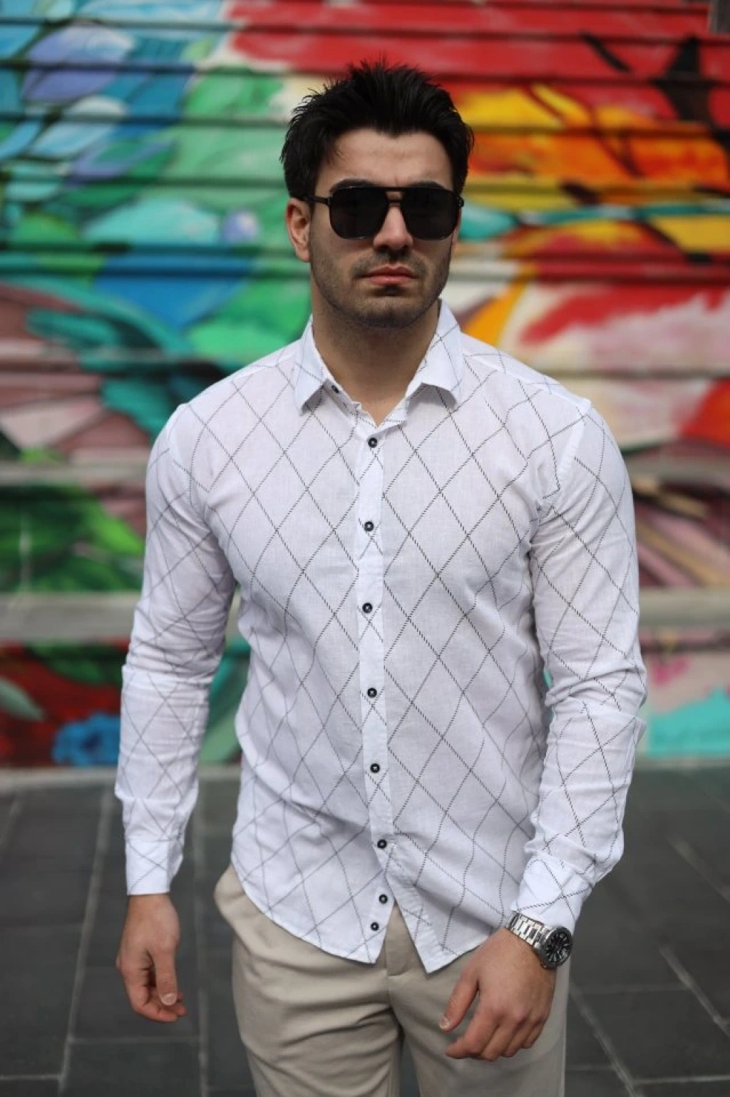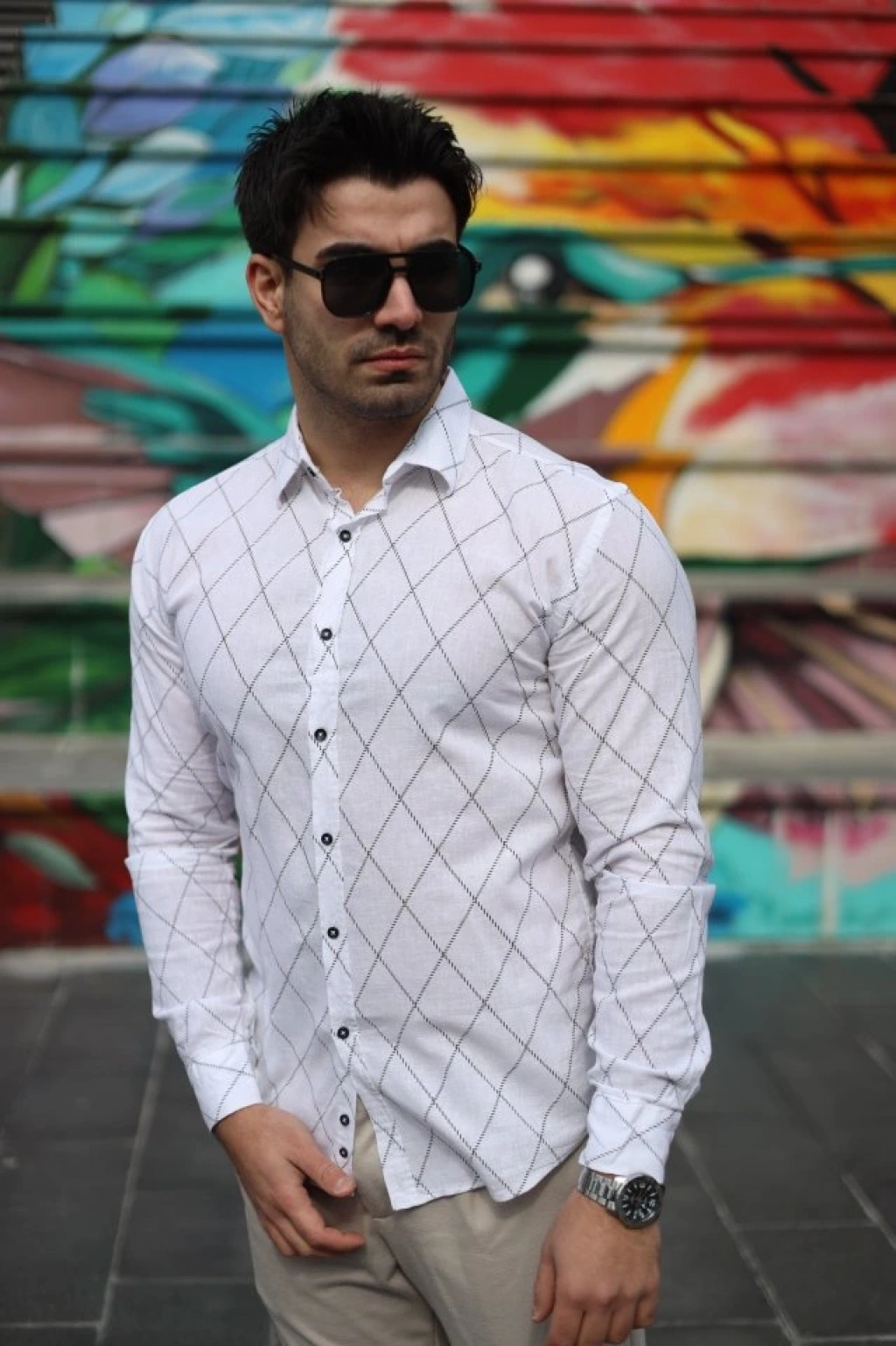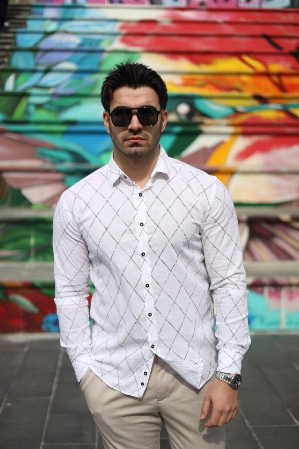 İki İplik Kumaş Baskılı Gömlek Beyaz