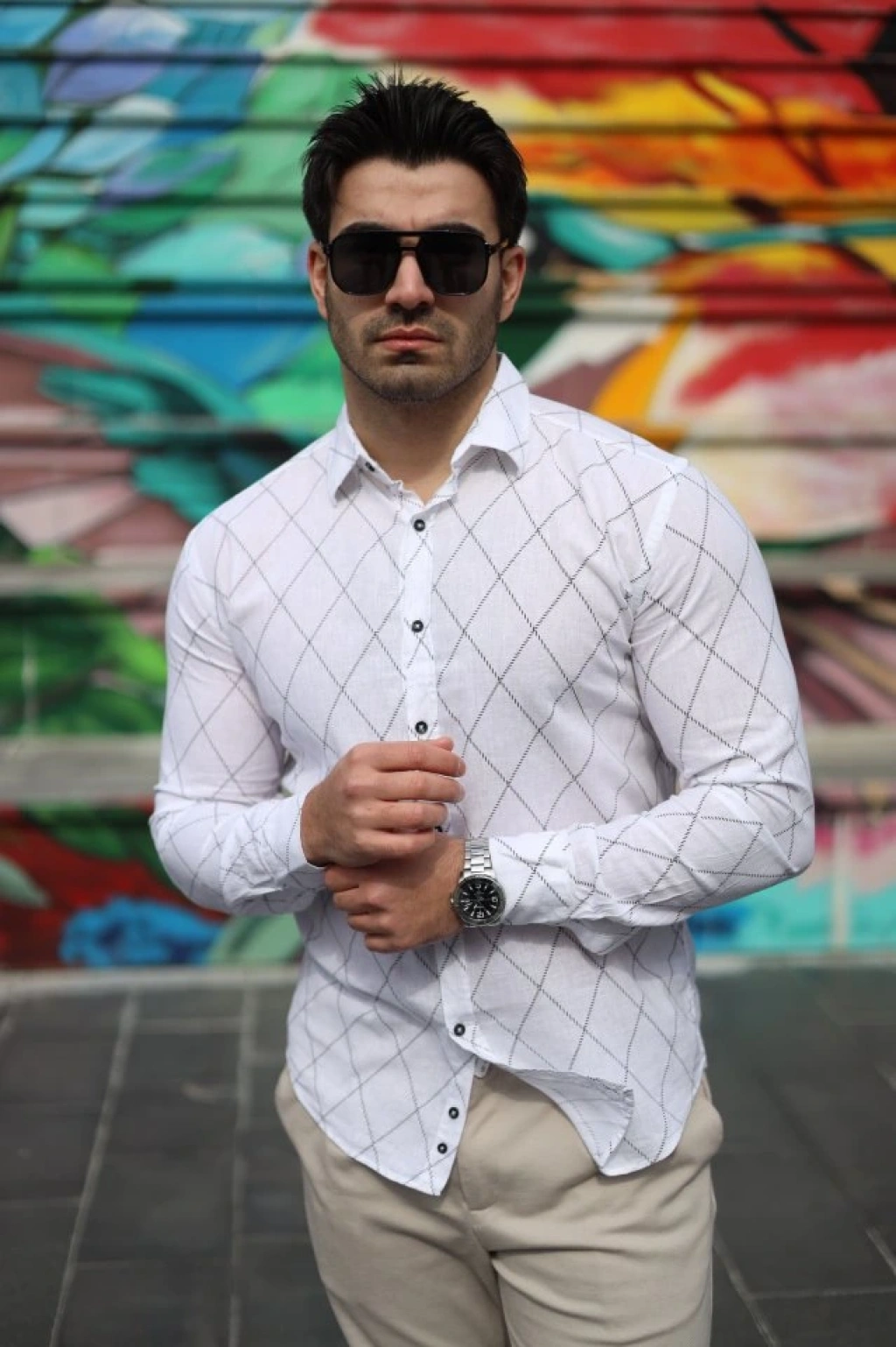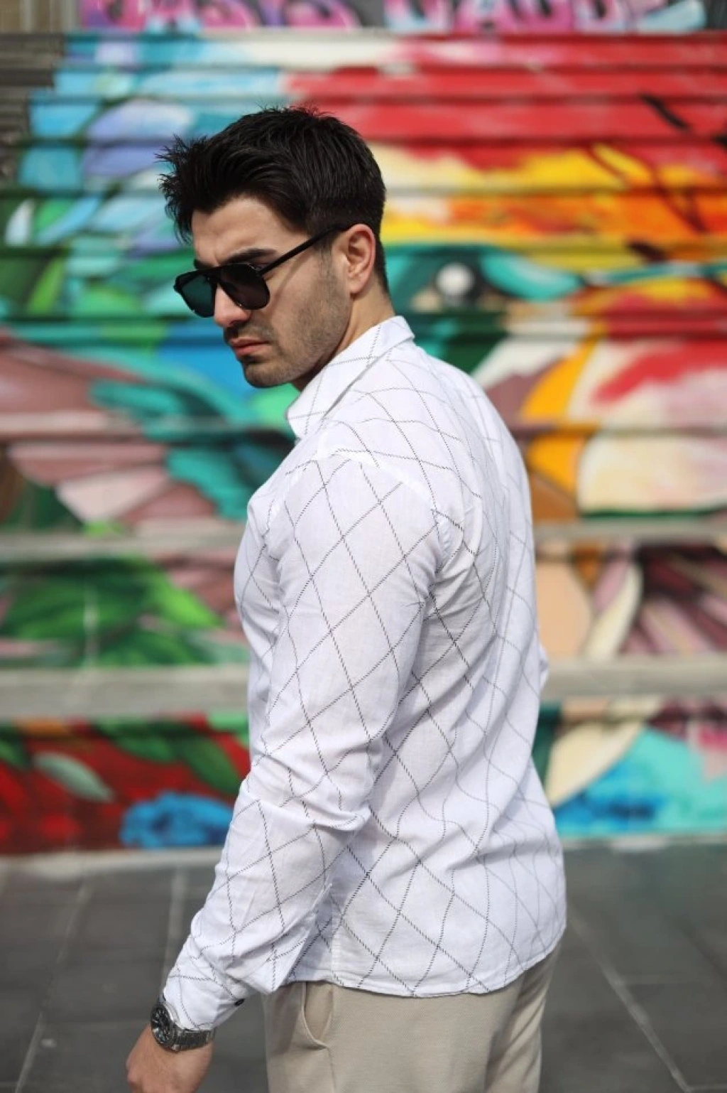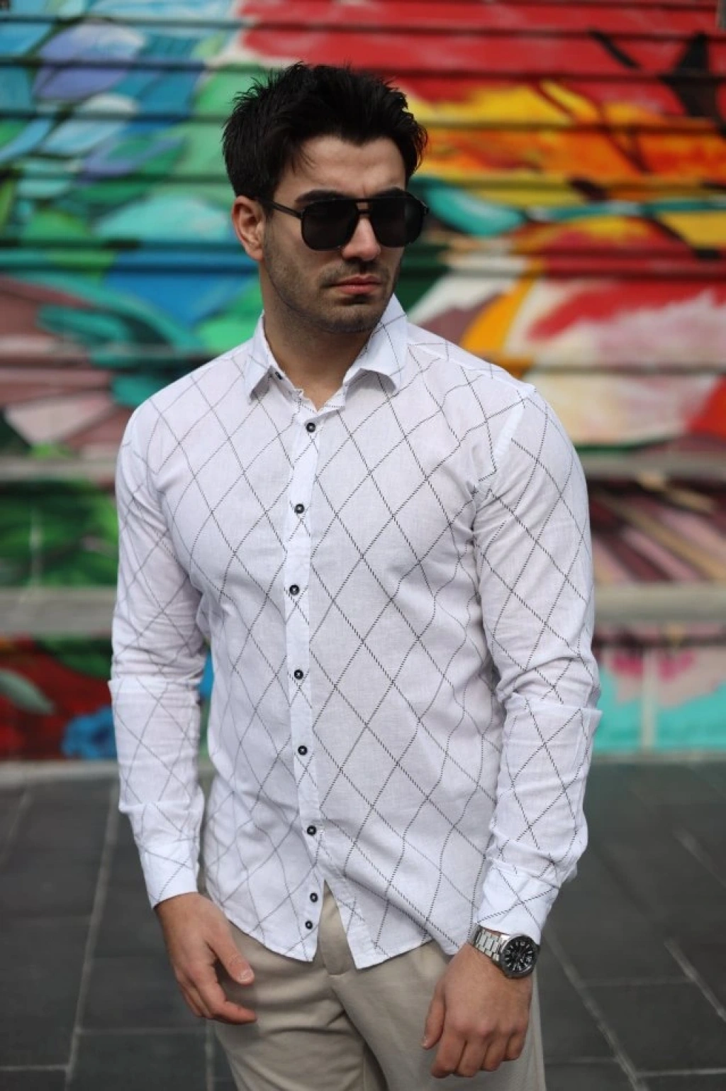 İki İplik Kumaş Baskılı Gömlek Beyaz