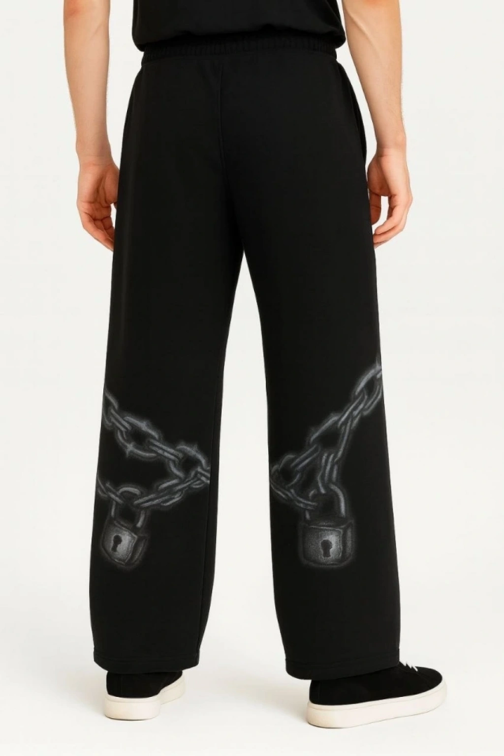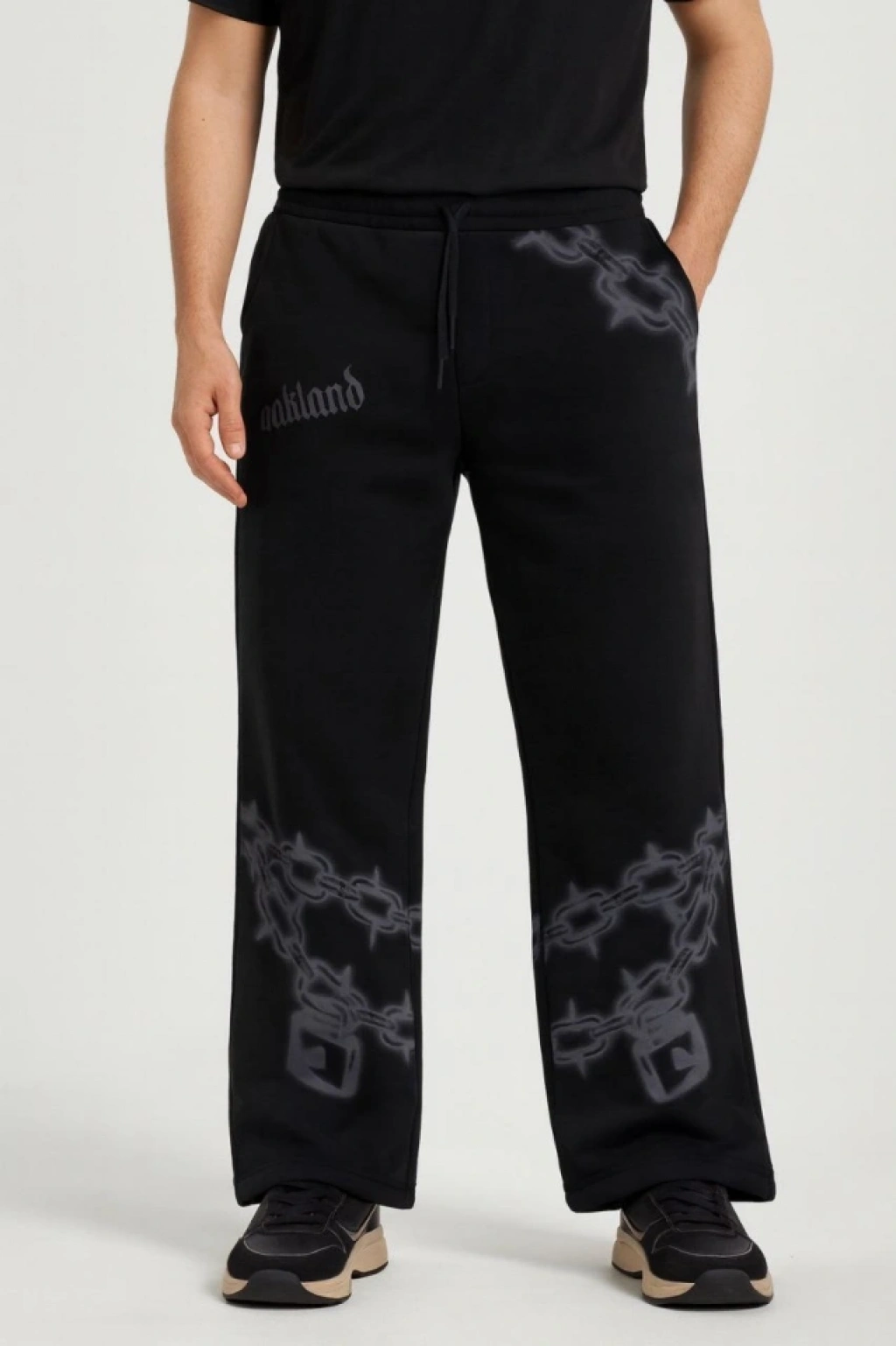 Erkek Üç İplik Pamuklu Baskılı Cepli Jogger Buggy Pantalon Oversize Kalıp - Siyah