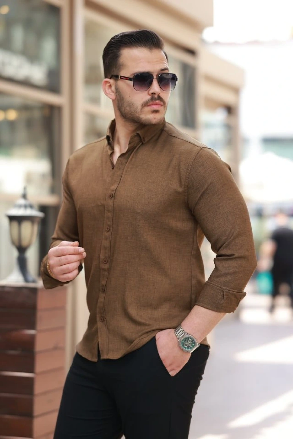 Erkek Uzun Kollu Regular ofya Keten Gömlek