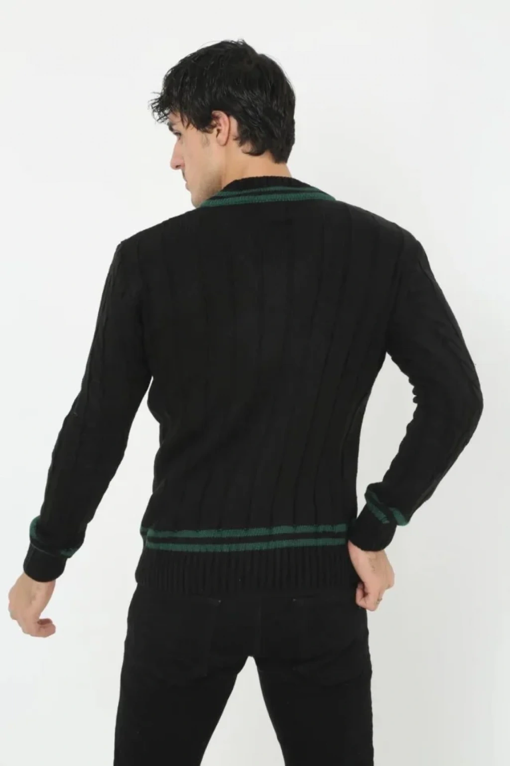 Unisex Uzun Kol V Yaka Triko Kazak Siyah