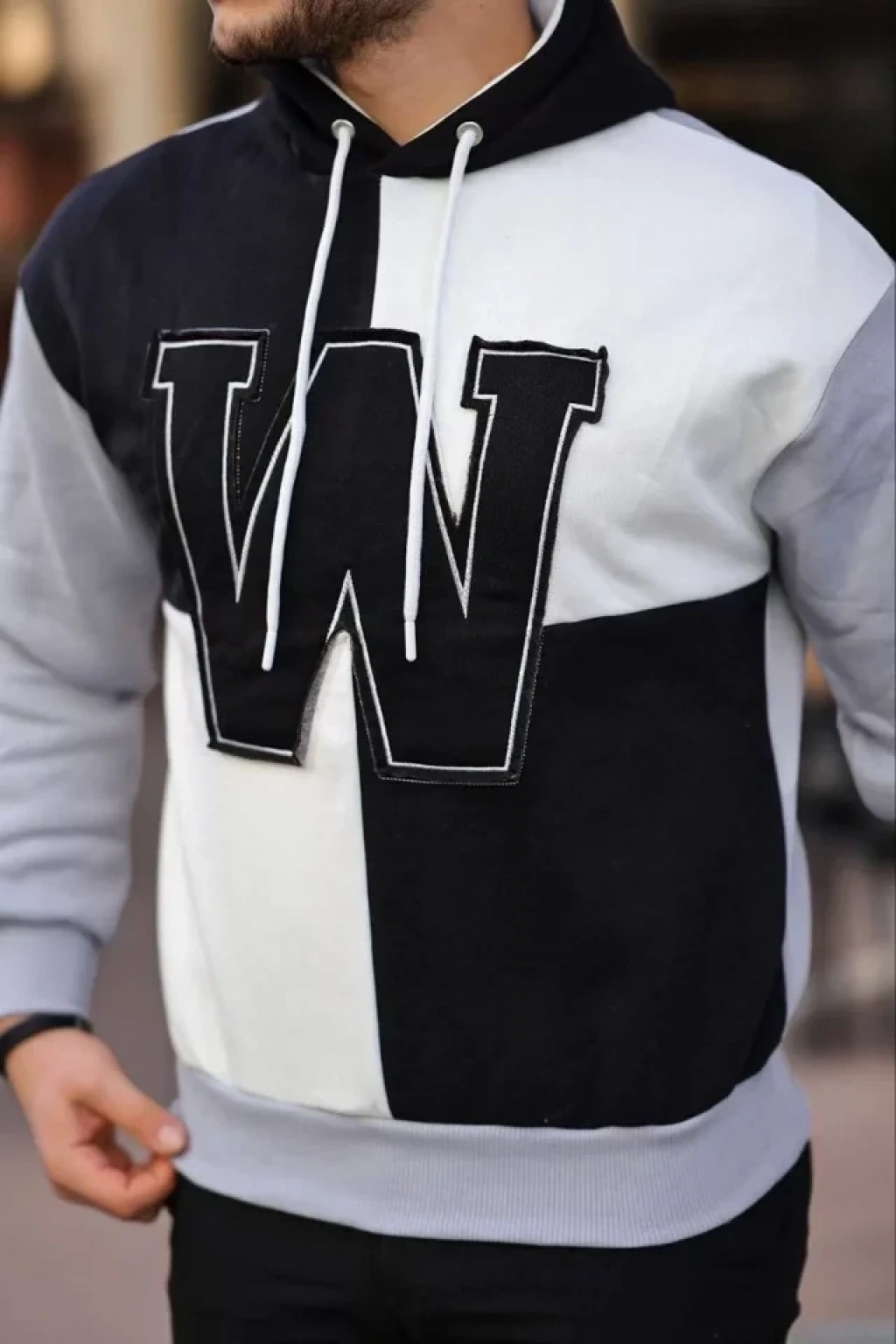 Erkek W Nakış İşlemeli Kapüşonlu weatshirt avi