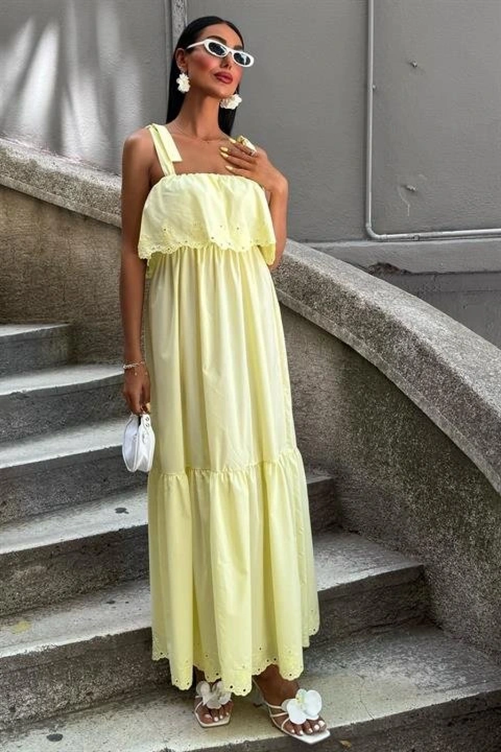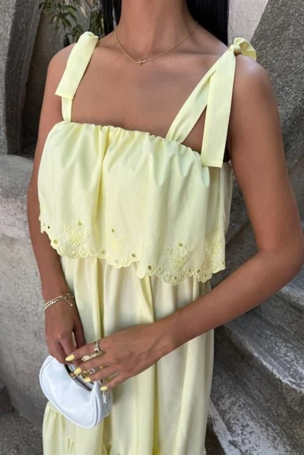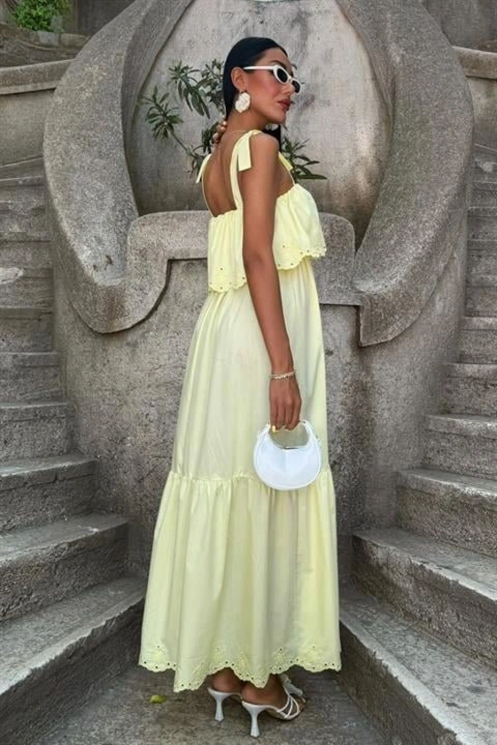 Etek Ucu Brode Nakışlı Boyundan Bağlamalı Elbise 2881