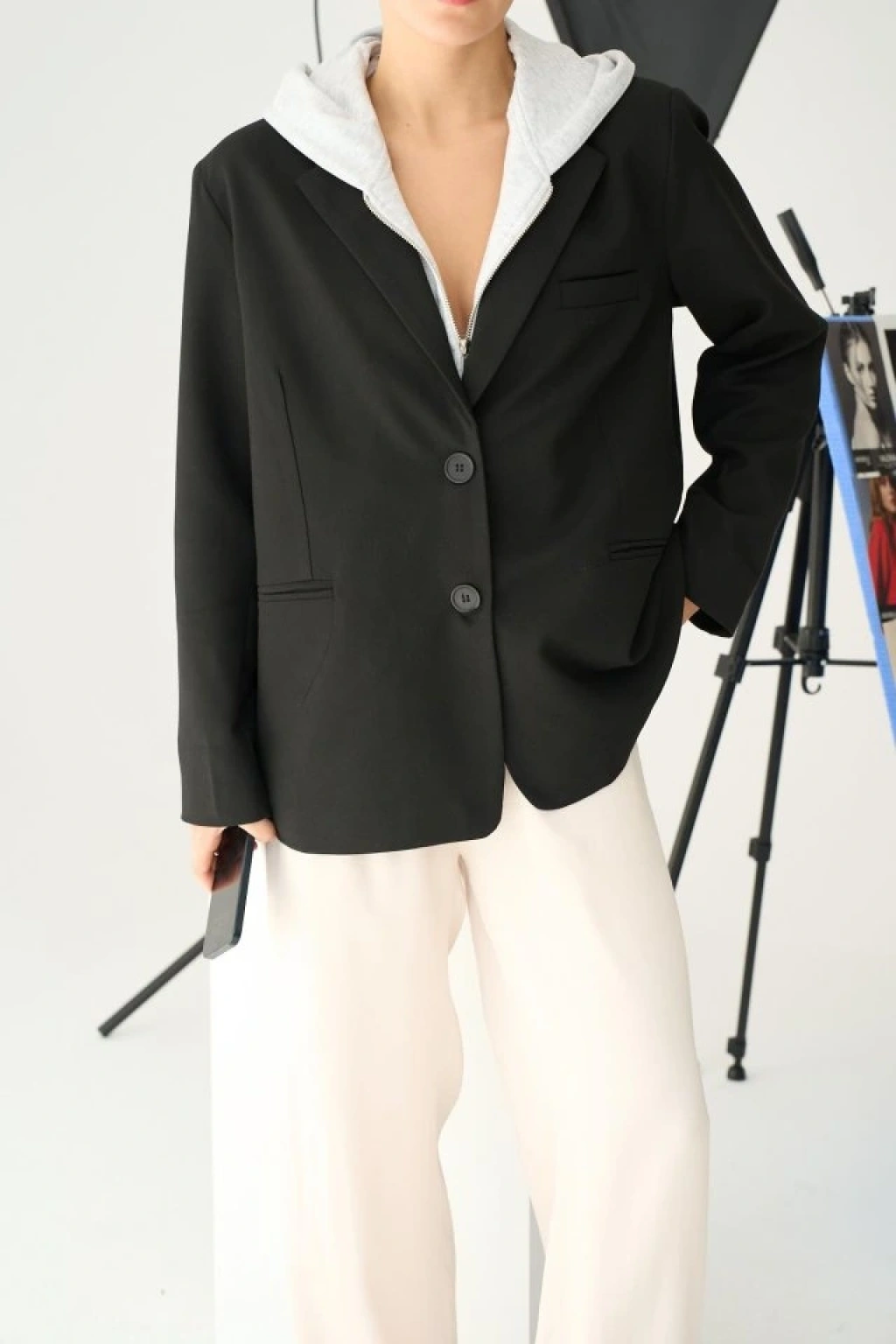 Fermuarlı Ceket - Siyah-Gri