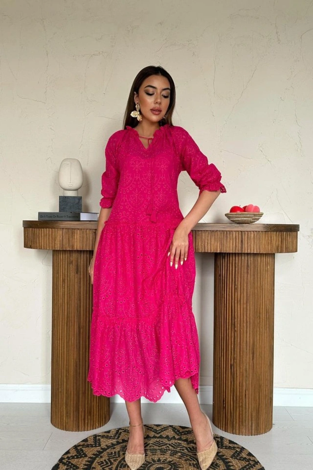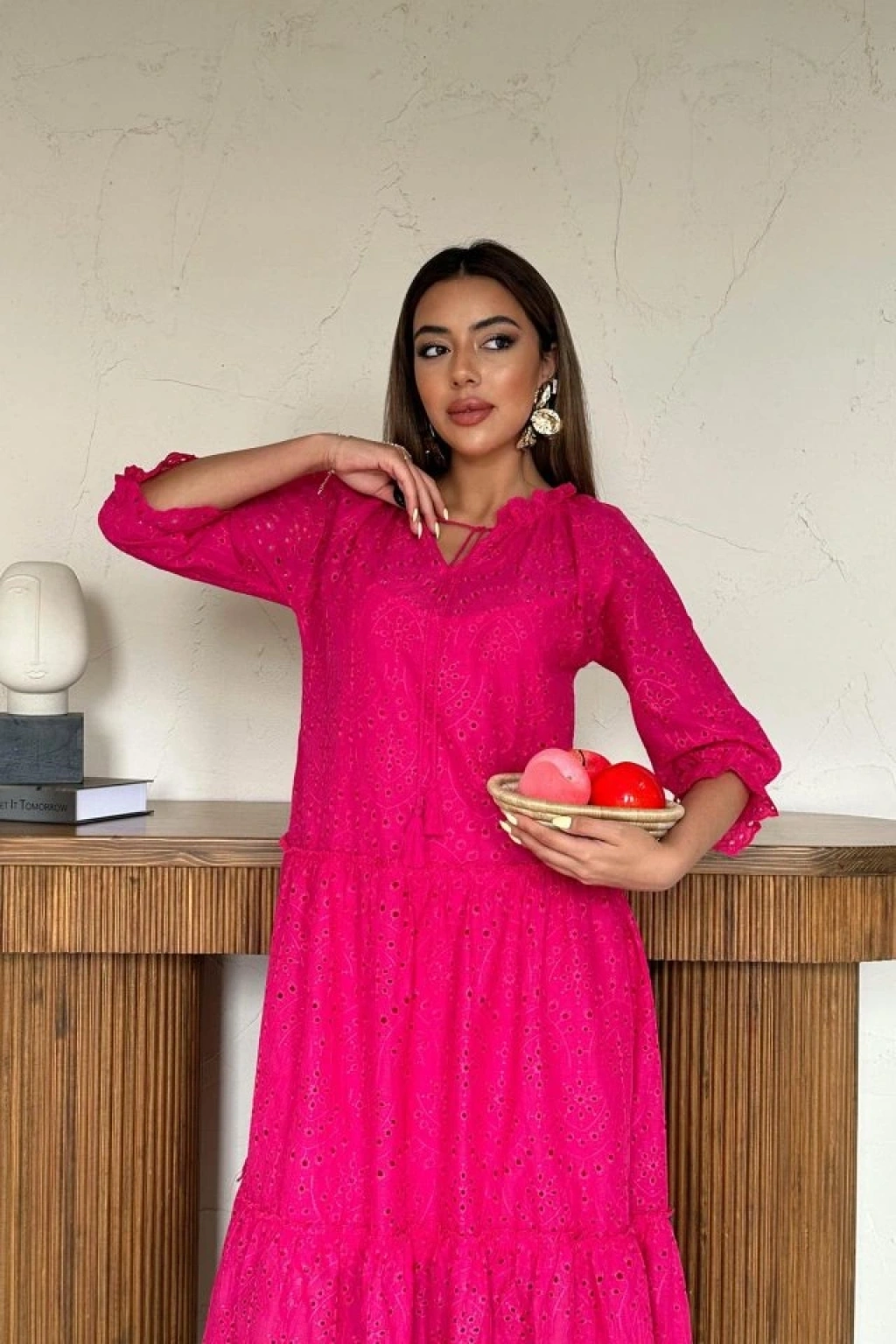 Fuşya Dantelli New Elbise