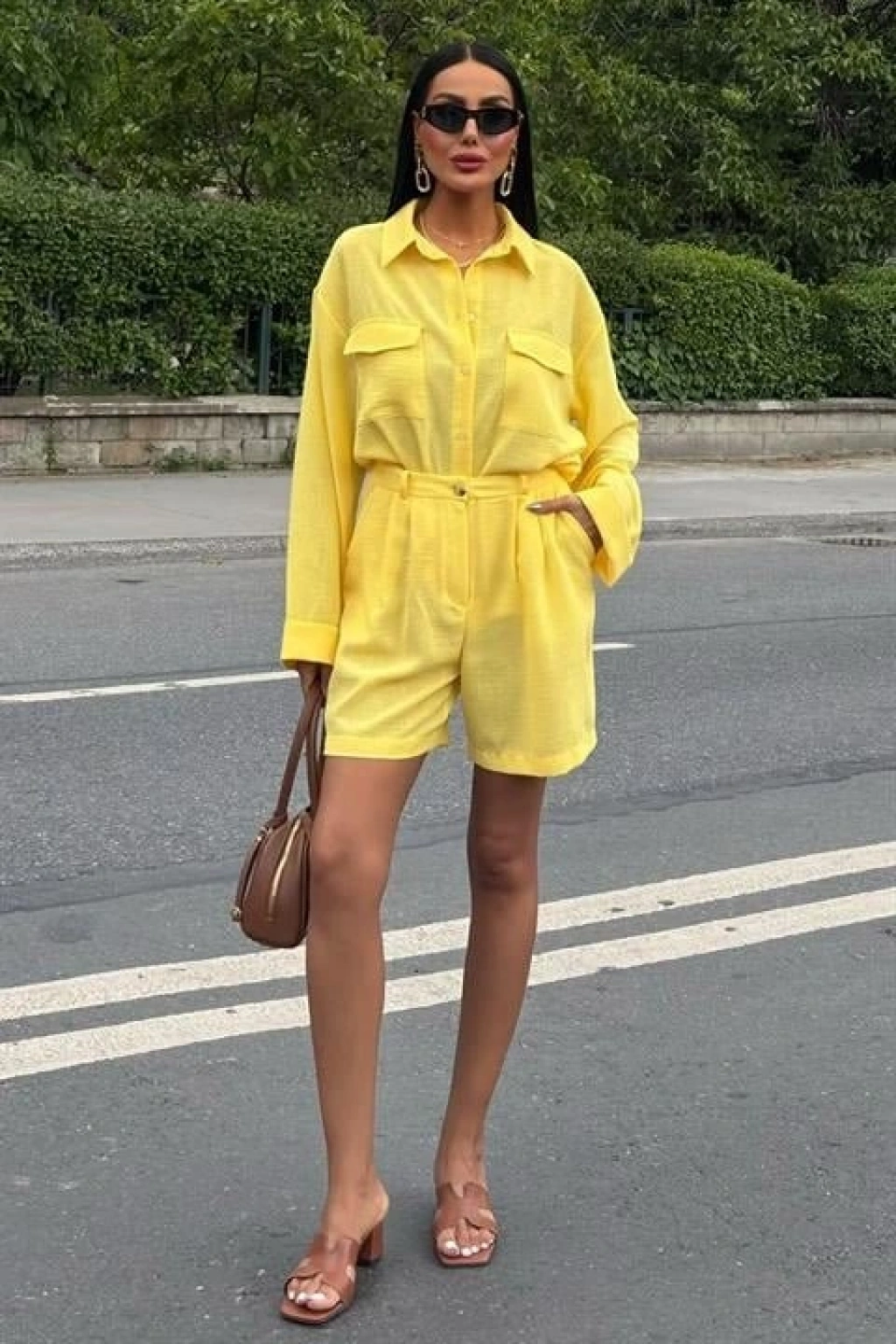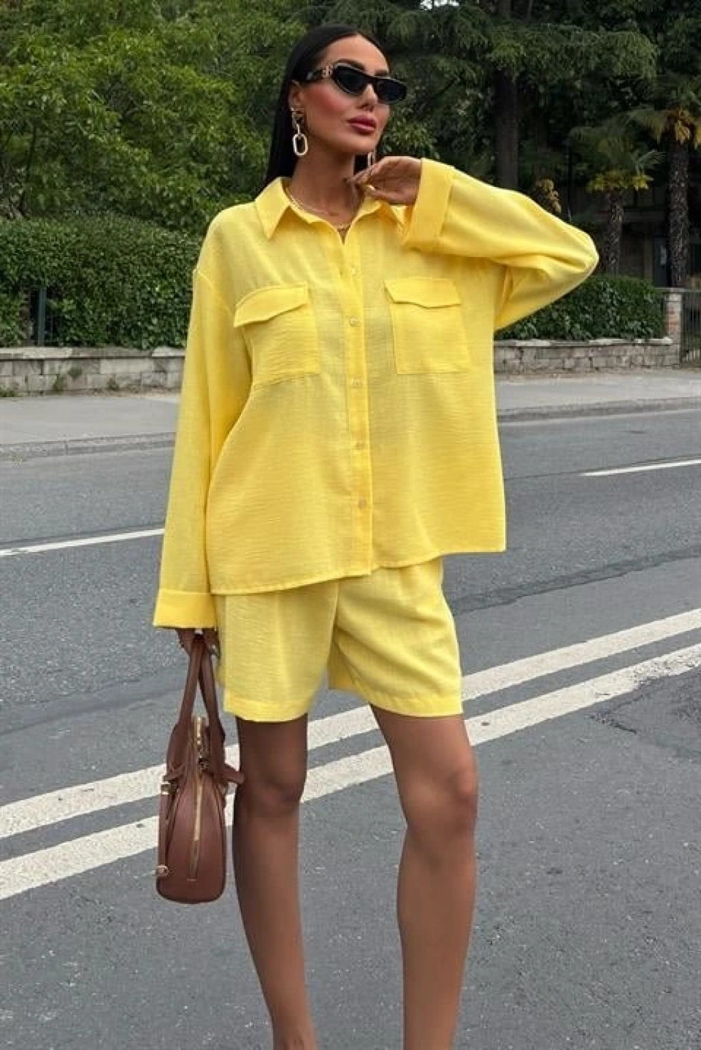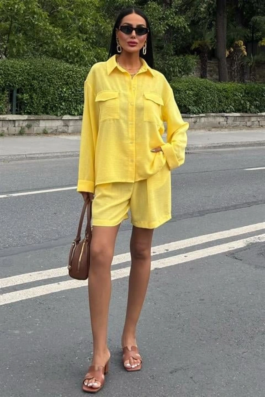 Gömlek Ve Şort Flamlı Keten Takım 10130