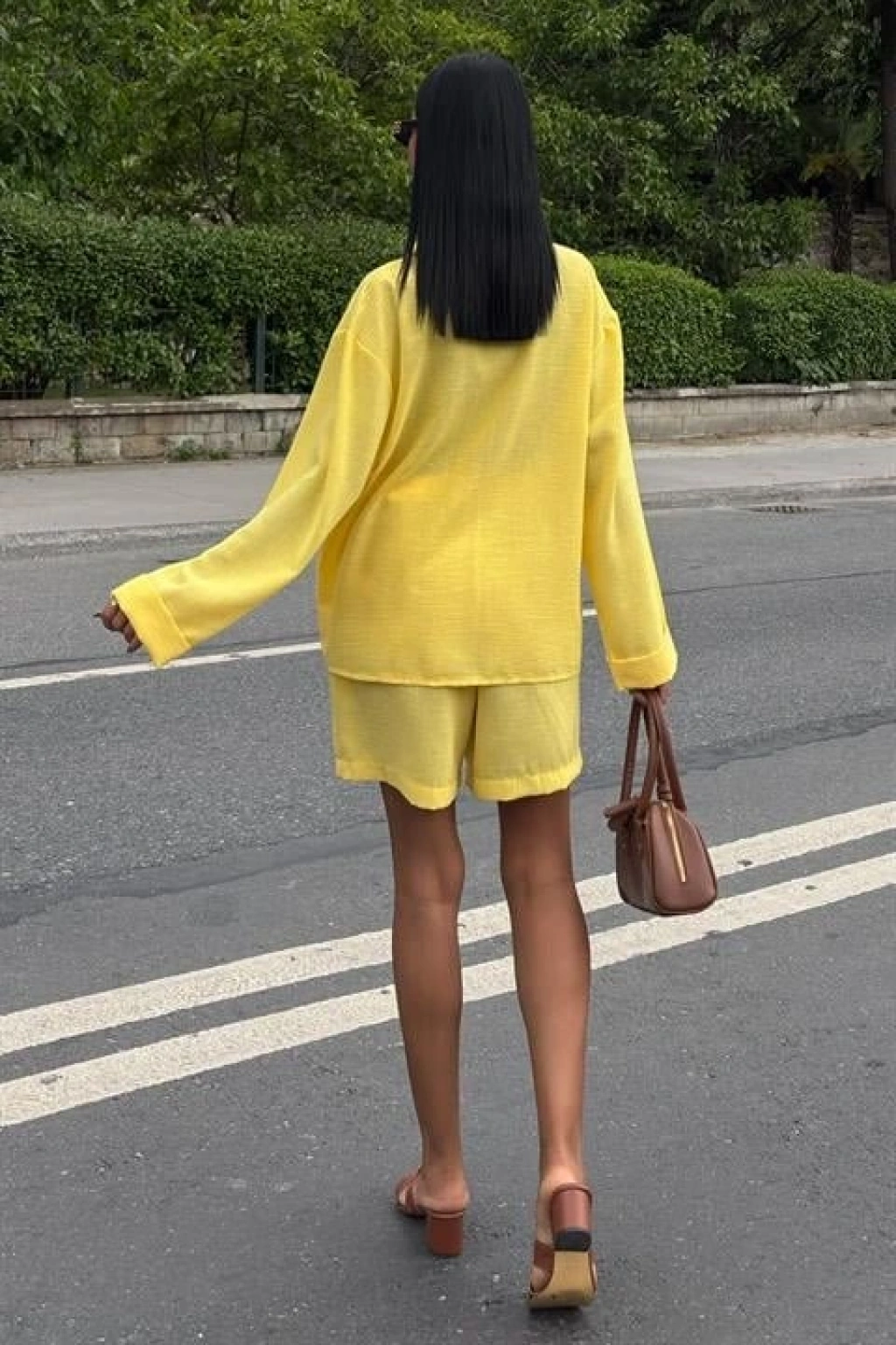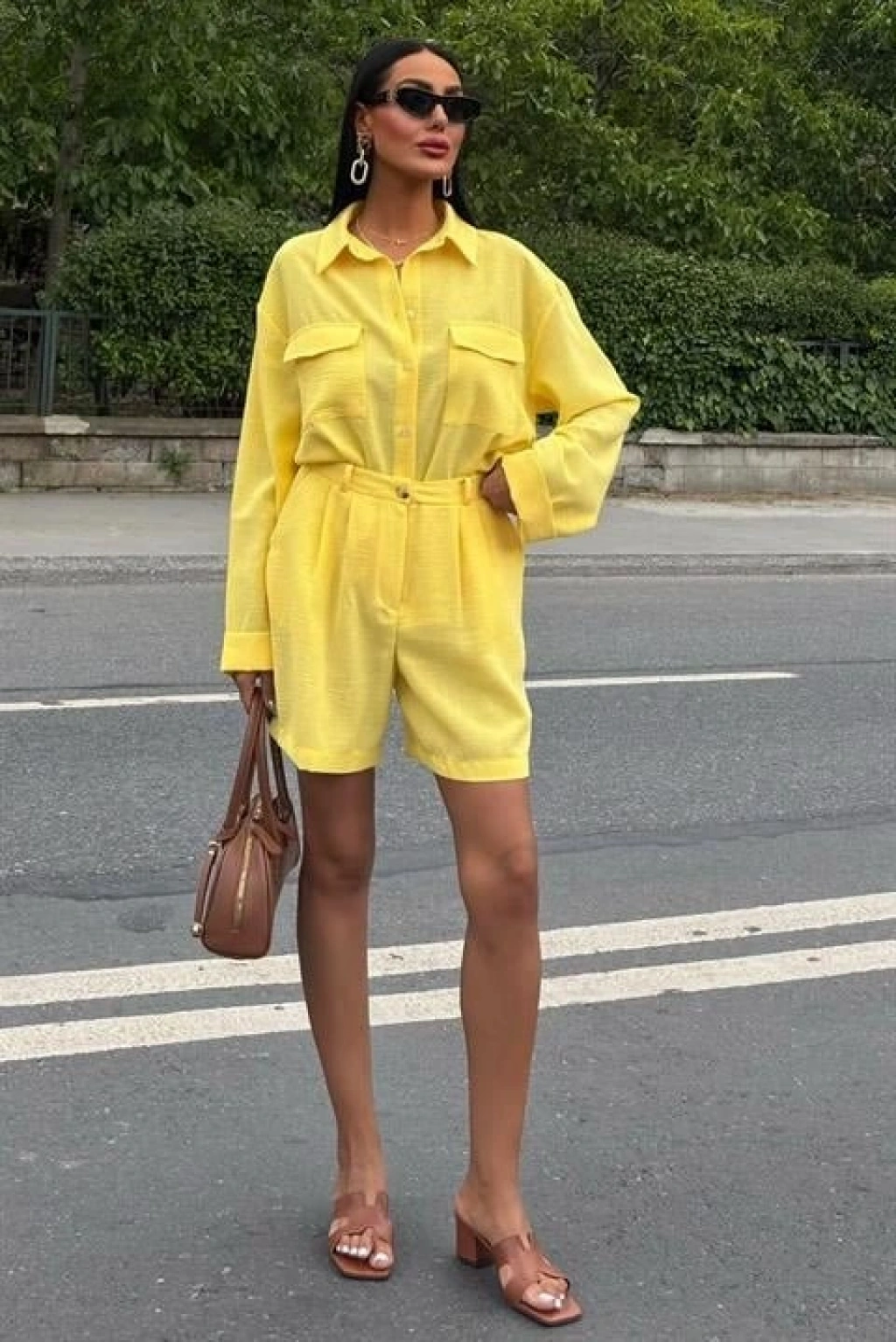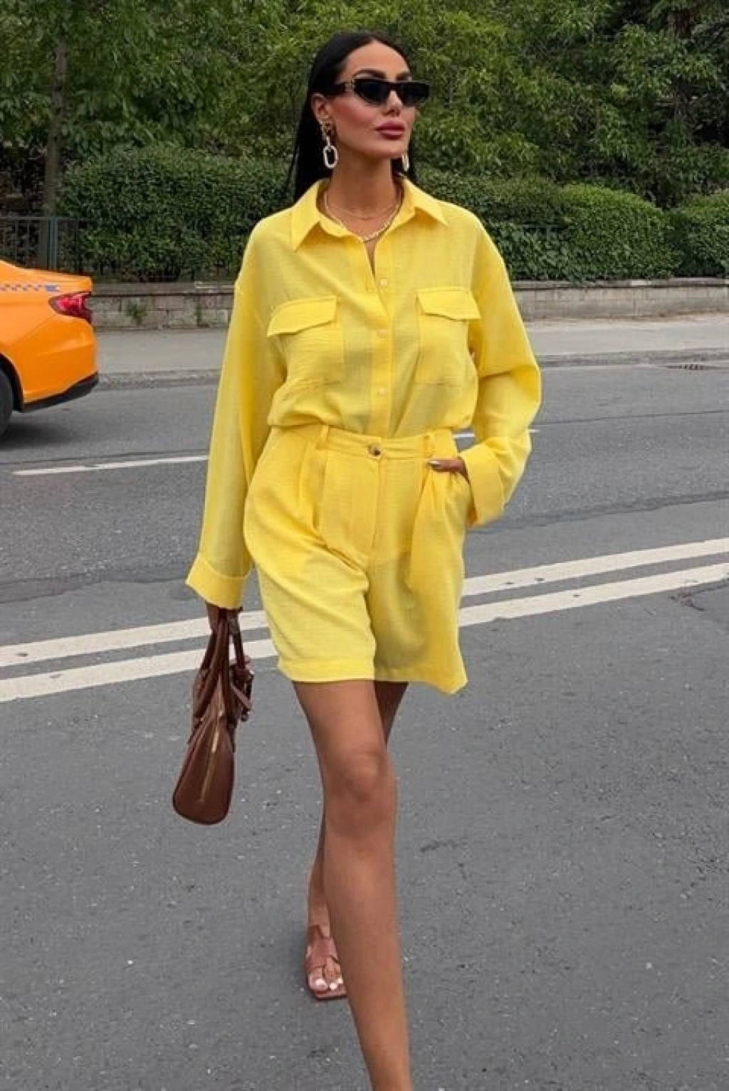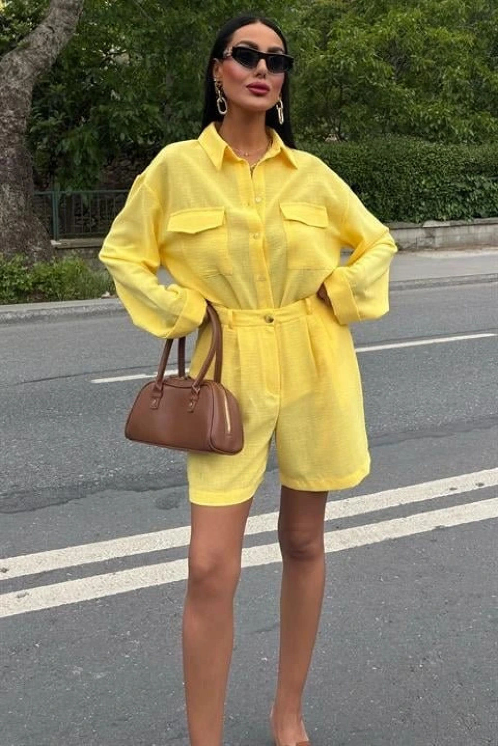 Gömlek Ve Şort Flamlı Keten Takım 10130